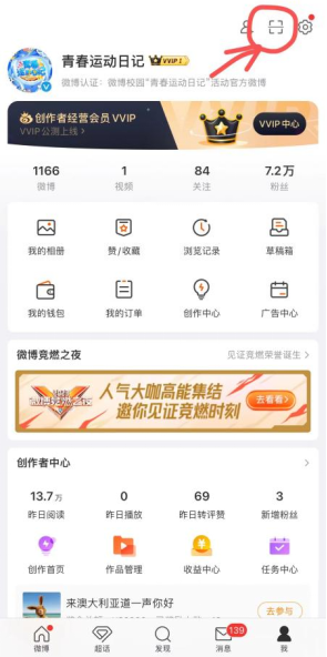 ① 打开个人微博点击【我的】右上角【扫码】参与活动;