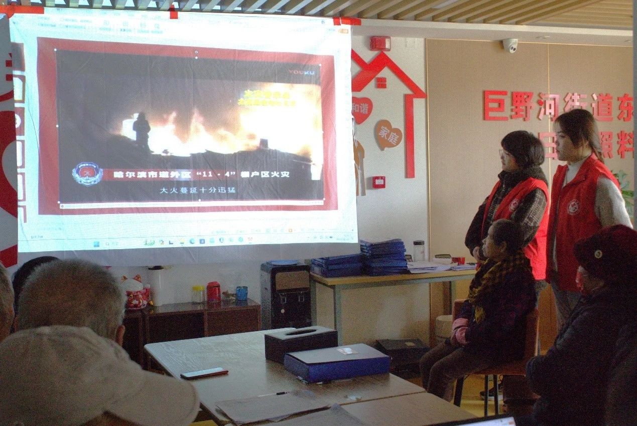 志愿者通过宣传教育培训、观看视频等多种形式,用生动形象、通俗易懂的语言向老年居民讲解了火场逃生基本知识、易发生火灾的原因、社区消防安全知识、消防安全的顺口溜等,并通过多媒体展示了火灾发生时正确的灭火和逃生方式。