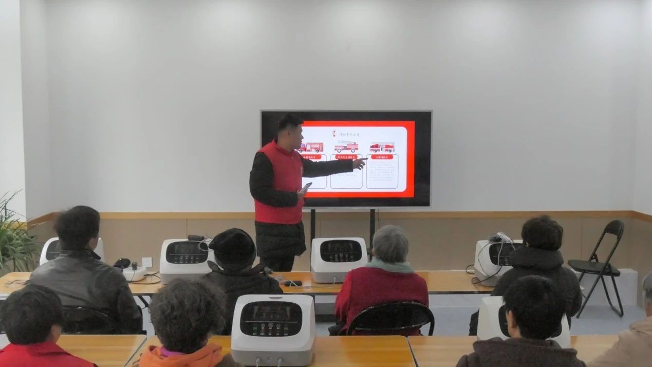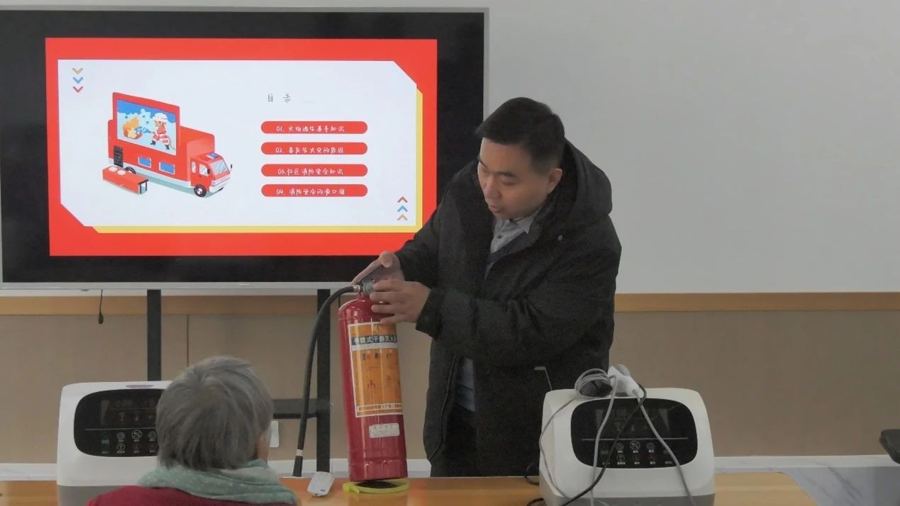 此外,志愿者们还详细介绍了灭火的方法、灭火器等消防器材的正确使用方法,使老年居民们对消防安全有了更为直观的认识。