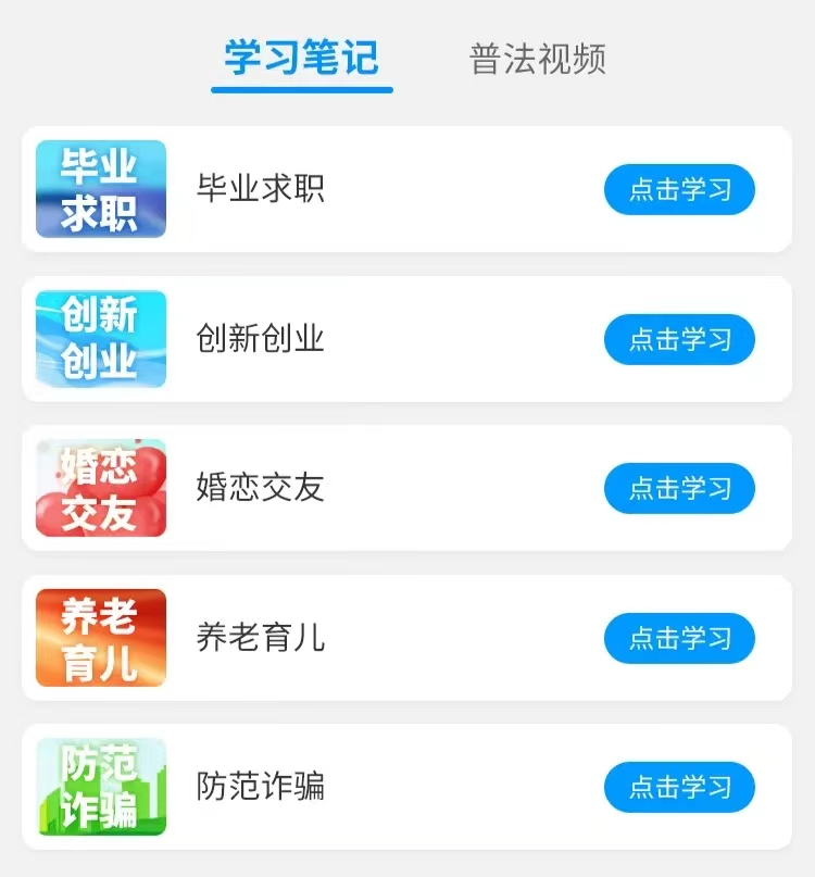 其中有毕业求职、创新创业、养老育儿、防范诈骗等栏目