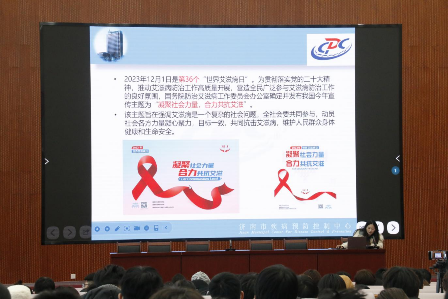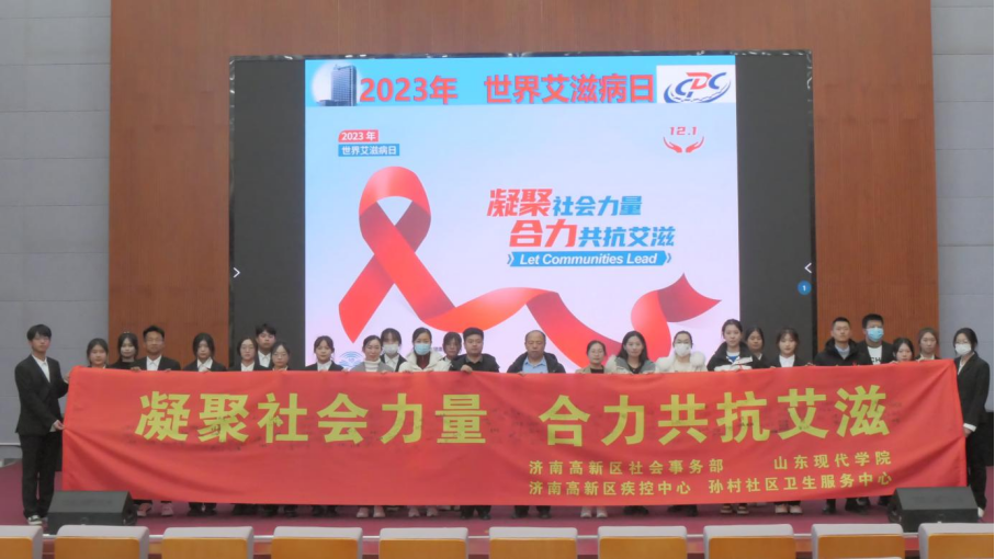 2023年12月1日是第36个“世界艾滋病日”。为推动艾滋病防治工作高质量开展,营造全民广泛参与艾滋病防治工作的良好氛围,近期,由济南市高新区管委会社会事务部、济南市高新区孙村街道办事处主办,济南市疾病预防控制中心济南高新区分中心、共青团山东现代学院委员会承办的山东现代学院2023年“世界艾滋病日”宣传讲座于我校图书馆报告厅举行。