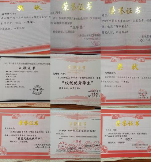 个人简介:潘城城,女,汉族,2022级本科助产学2班。在班里担任学习委员一职,同时在护理学院学生会任职,工作脚踏实地、严谨认真,多次参加学校组织的活动,积极参加各种比赛,曾获得“山东卫视菁彩齐鲁大赛”二等奖、“助产专业技能大赛”三等奖等荣誉。