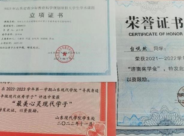 个人简介:台悦然,女,汉族,中共党员,2020级本科计算机科学与技术2班。他为人乐观开朗,积极团结同学,勇于奉献,在校期间积极参加各类活动比赛,曾获得山东省青少年教育科学规划项目大学生学术课题立项证书、山东现代学院“最美心灵现代学子”等荣誉。