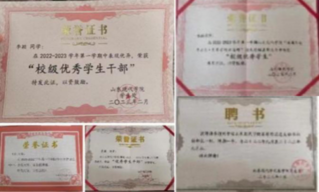 个人简介:李颖,女,汉族,共青团员,2021级本科康复治疗学1班。她学习刻苦勤奋,成绩优异,积极参加各类活动比赛,在校期间荣获“大学生火灾应对技能专题竞赛”二等奖、专业英语四级证书、“省级优秀学生”、山东现代学院“校级优秀学生干部”等荣誉。