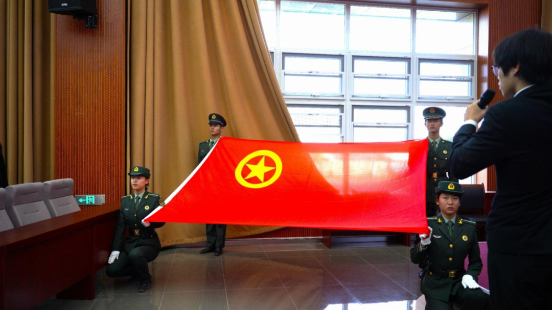 领誓人郭春旭同学带领全体新团员面向团旗进行入团宣誓,铿锵有力的誓词激荡着每一位同学的心。