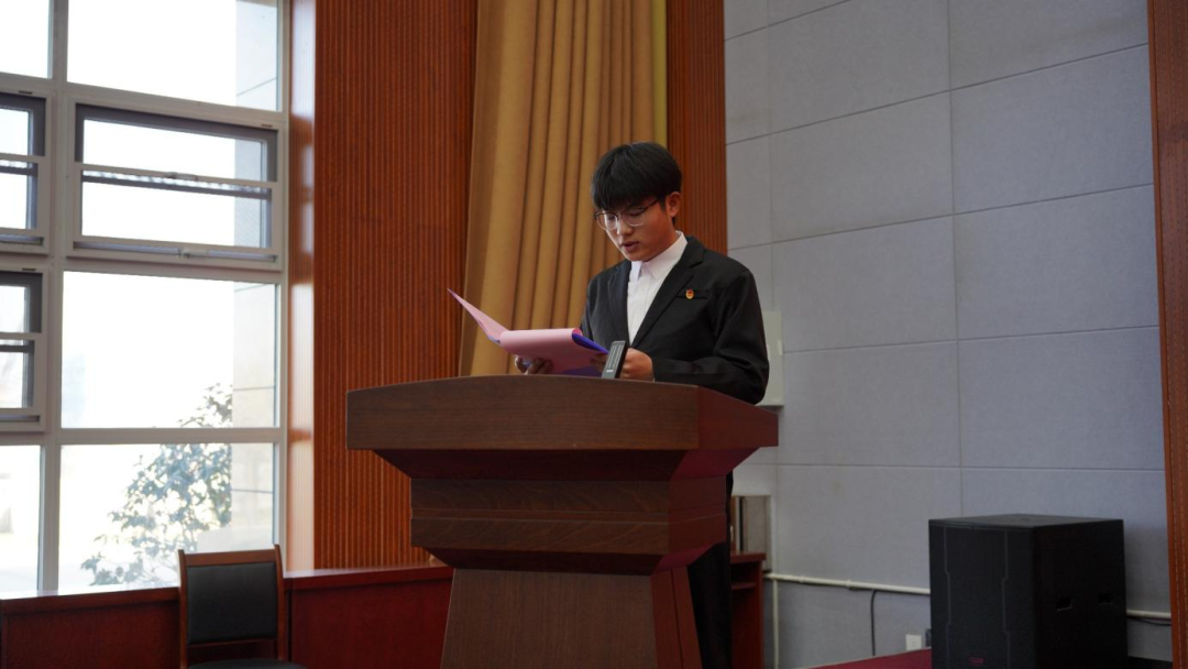 校团委副书记夏博翔宣布新团员名单,并对新团员们表示祝贺和欢迎。