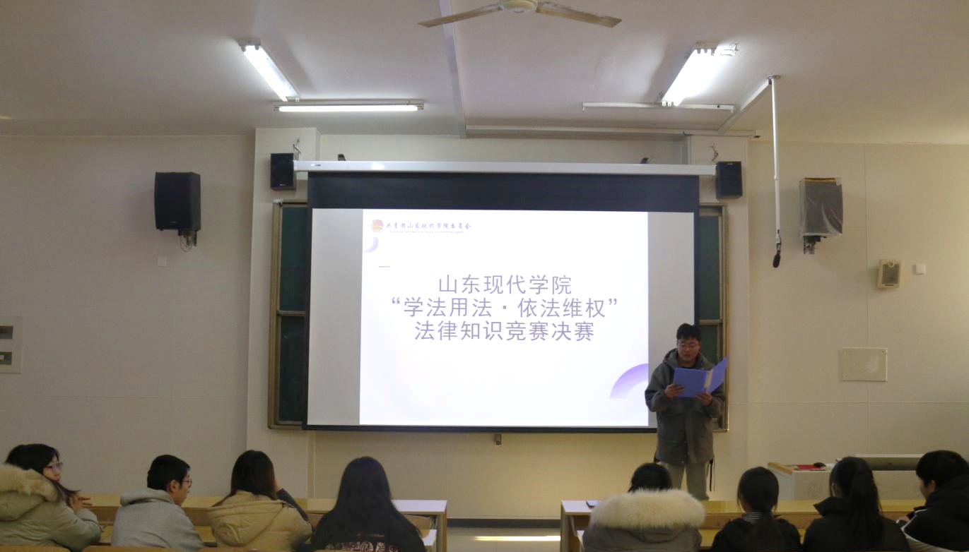 为增强现代学子法律意识,提高个人法律素养,培养学生依法维权的能力,营造一个和谐、安全的校园环境,12月22日,由共青团山东现代学院委员会主办,学生联合会权益部承办的“学法用法·依法维权”法律知识竞赛活动于致远庭103室举行。