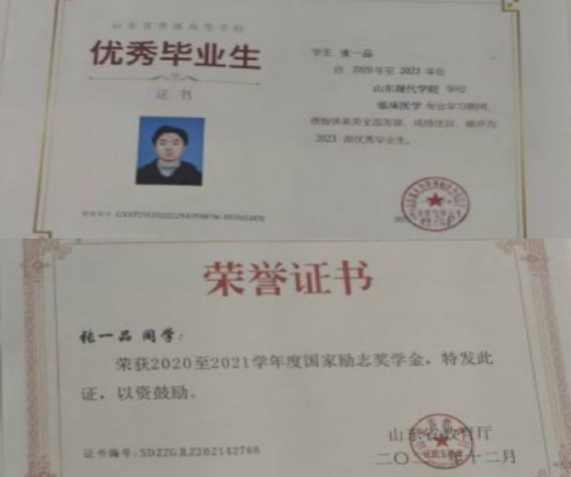 个人简介:张一品,男,汉族,共青团员,2020级临床医学专业。在生活中,尊重老师,关爱同学,学习成绩优异,积极参加学校组织的各项活动,思想上,积极向党组织靠拢;曾获得“国家励志奖学金”“2023届山东省优秀毕业生”等荣誉。