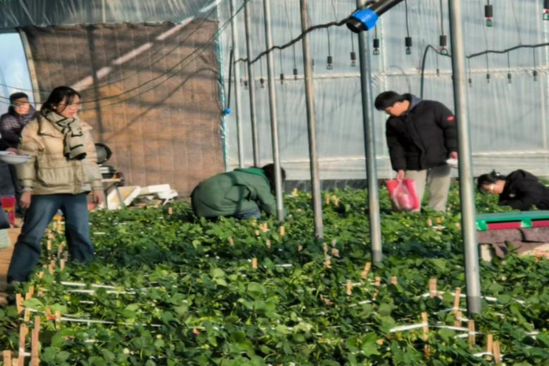 随后,在朱家庄村团支部书记孙效奇同志的邀请下,志愿者们来到草莓大棚。种植草莓的村民向志愿者讲解了大棚草莓的培育过程和需要注意的问题。在讲解结束后,大家又通过亲身体验采摘草莓,观察草莓结构并学习草莓采摘技巧。