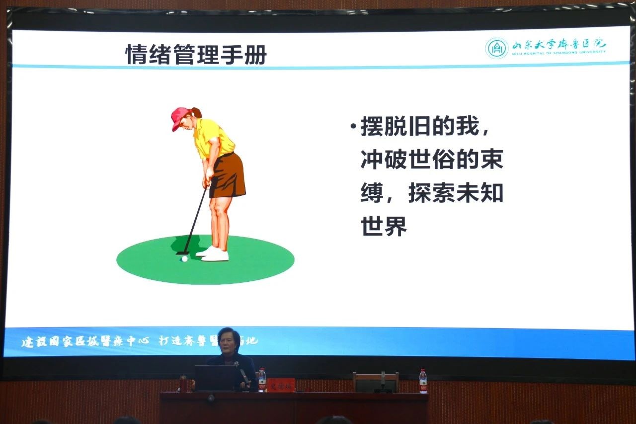 本次讲座特邀山东大学齐鲁医学院妇产科专家史德焕教授主讲。史教授提到,当代女性患抑郁症的概率远远高于男性,发现苗头一定要及时治疗,必要时要学会自救的方法。随后,史教授分享了关于抑郁症自救的几种方法,例如坚持锻炼、外出交际、观息法等,并强调,不良情绪如同定时炸弹,应当在持续高强度的学习和工作后学会放松与释放负面情绪。此外,她还讲到了影响情绪的原因以及不良情绪的表现,呼吁女性大学生做到爱人先爱己,做自己情绪的掌舵人。