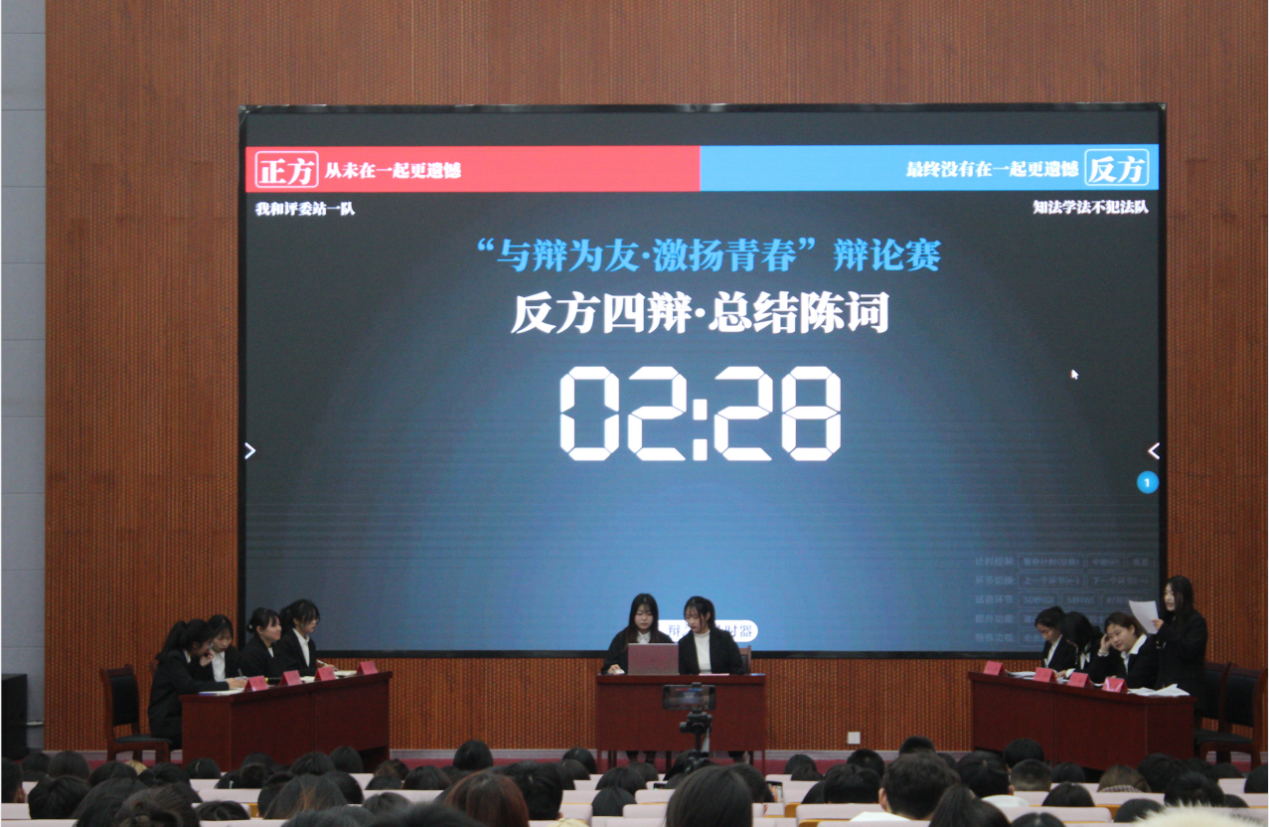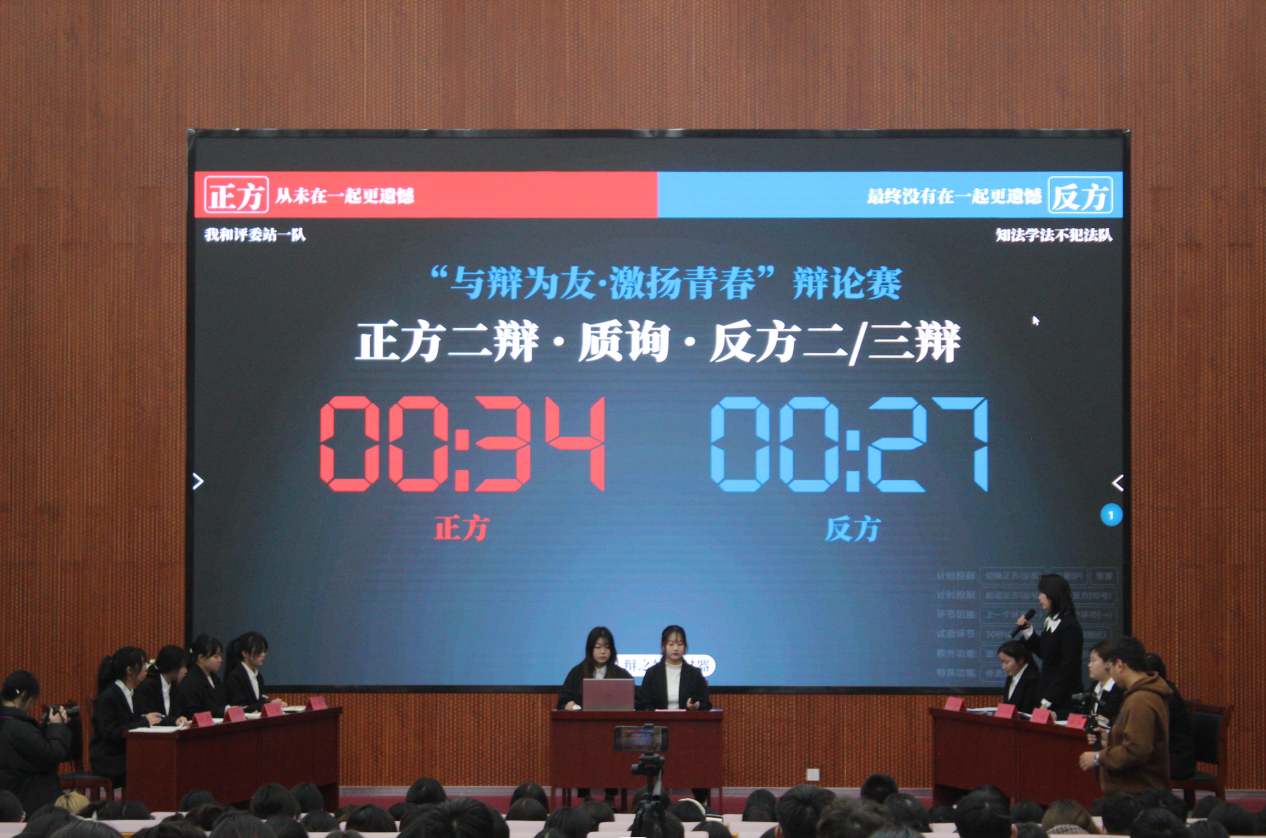 为锻炼学生的逻辑思维、口才和协作能力,展现大学生朝气蓬勃、积极向上的精神面貌,丰富校园文化生活,12月14日,我校于图书馆报告厅举办“以辩为友·激扬青春”辩论赛决赛。