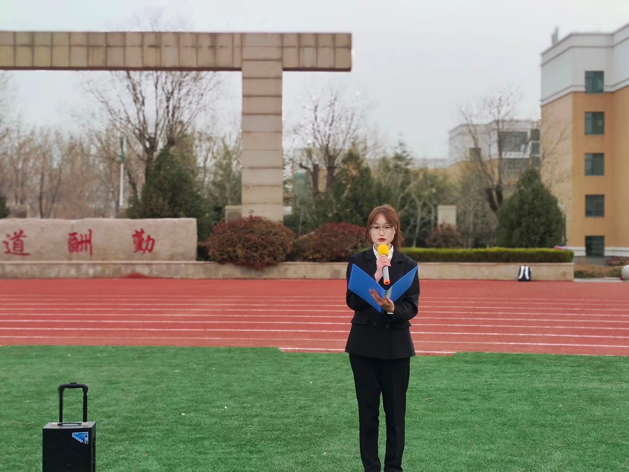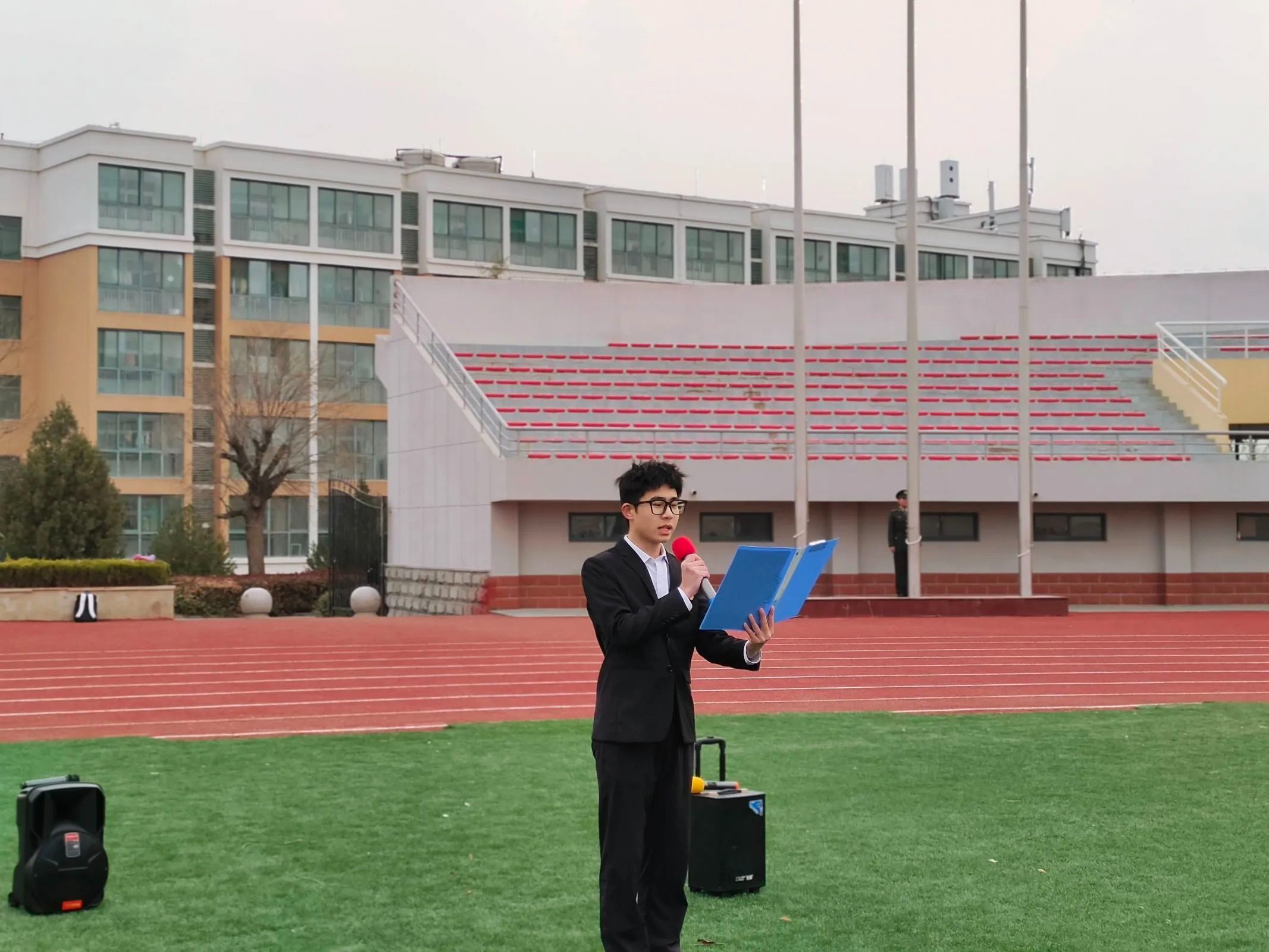 仪式进行第三项:由学生代表曾渝进行国旗下的演讲。