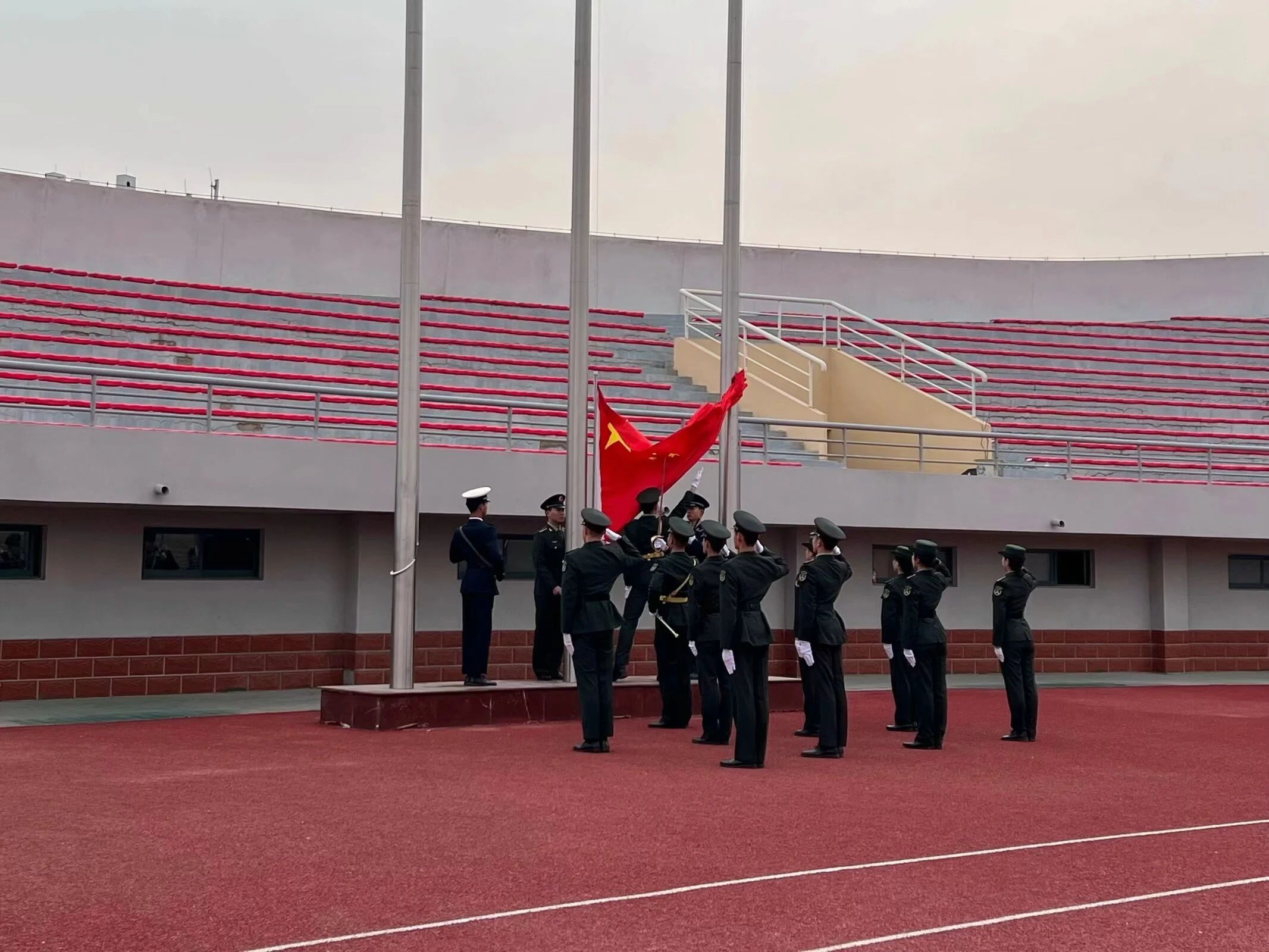 仪式进行第一项:升国旗,奏唱国歌。