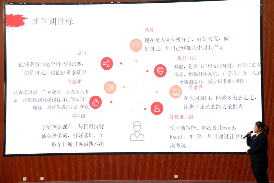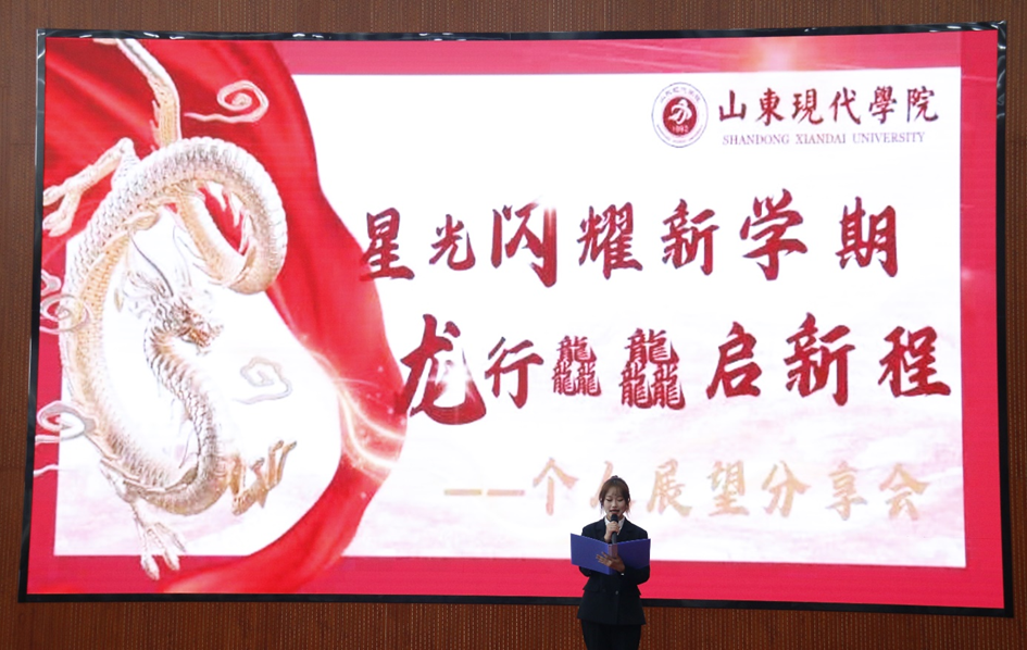 龙腾云海志高远,凤舞九天梦飞扬。为激发现代学子的学习热情和积极性,营造积极向上的学习氛围,帮助现代学子明确新学期、新愿望、新规划、新目标,做好切实可行的学习计划,树立奋斗目标,促进个人成长,近日,我校于图书馆报告厅举行“星光闪耀新学期·龙行龘龘启新程”个人展望分享会。