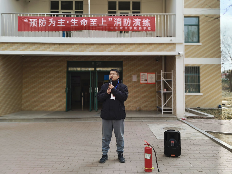 演练活动结束后,药学院办公室主任王威向在场师生再次强调了应急逃生的要领及注意事项,并向师生们现场演示了灭火器的使用方法、具体操作步骤等,帮助师生们更加深入地了解了消防安全知识和应对火灾的方法。