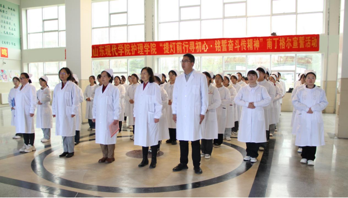 为了重温南丁格尔誓言,深刻领悟护理事业的初心与使命,近日,由共青团山东现代学院委员会举办,护理学院团总支承办的“提灯前行寻初心•铭誓奋斗传精神”宣誓活动在博学楼大厅举行。