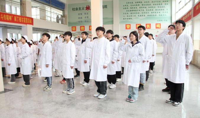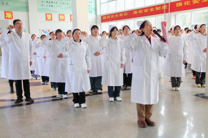 护理学院院长史德焕带领全体师生庄严宣誓,同学们齐声跟读南丁格尔誓言,以饱满的热情,坚定的声音,表达了对护理事业的忠诚和承诺。