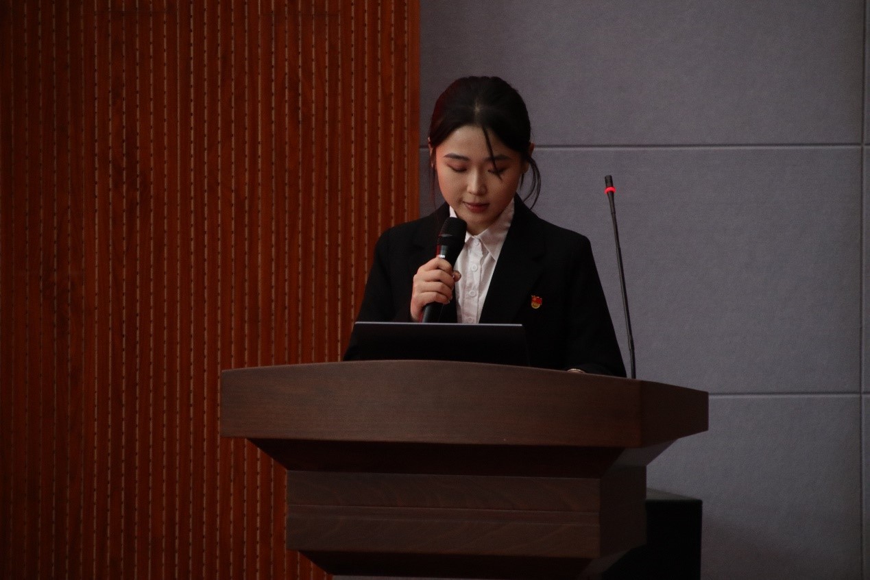 校团委书记处学生副书记宋雨宁同学总结发言,她提出青年干部要勇于担当使命,坚定不移听党话、跟党走,立志做有理想、敢担当、能吃苦、肯奋斗的新时代好青年。同时她也向现代学子提出了今后的要求,希望同学们能够勤学善思、好研深钻;践行初心、耕耘使命;提能励为、锤炼作风。