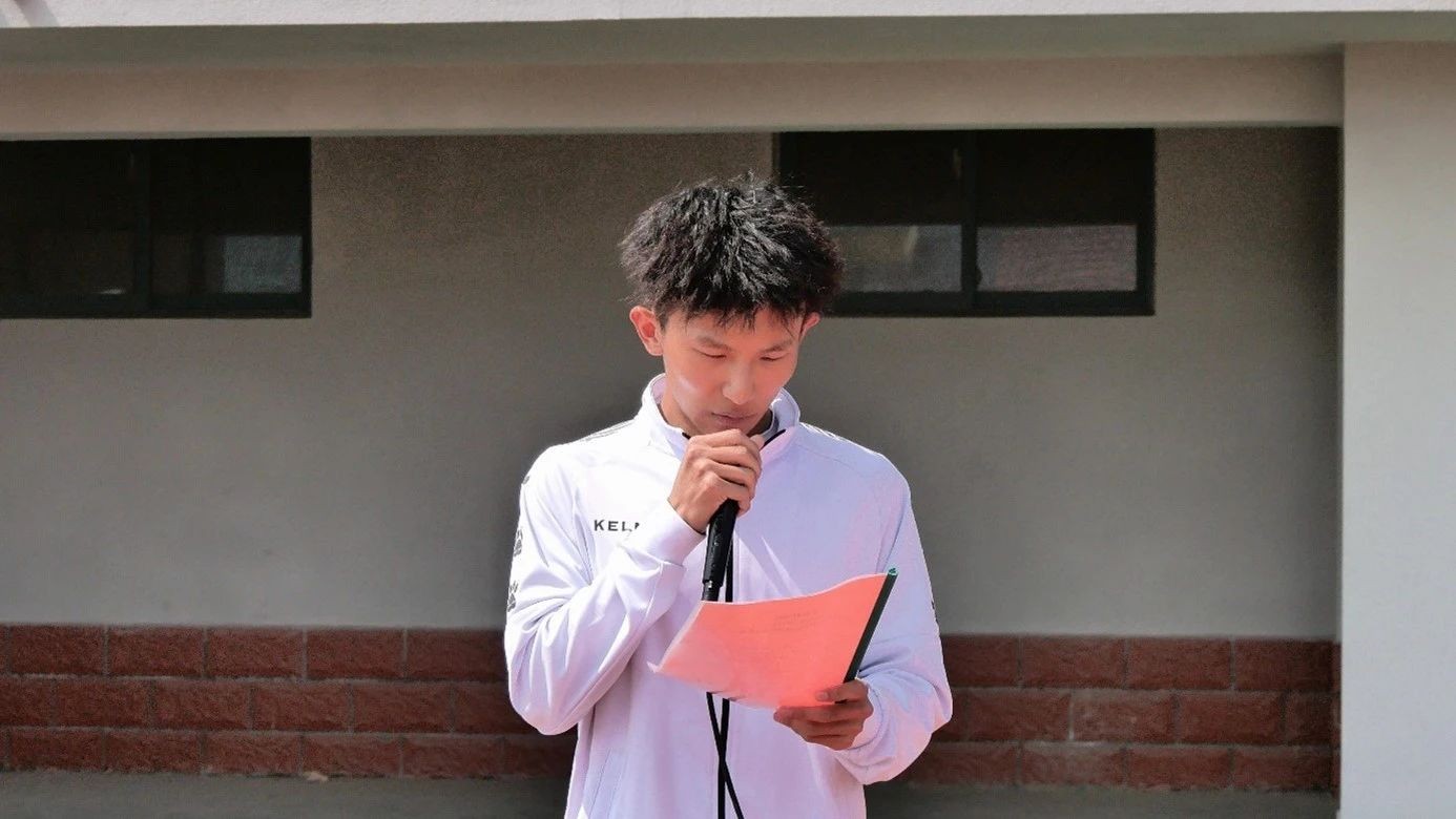 李秀彬老师为开幕式致辞,他介绍了近年来我校在校园足球项目建设上的发展与成就,一直以来,我校坚持以足球联赛为依托,二级学院为基本单位,强身健体为出发点,团队合作为目标,积极营造健康的校园运动氛围,校园足球已然成为学校阳光体育的重要内容。随后,李老师提议同学们要积极参与学校的社团活动,充分利用好课余时间提高自己的文化体育修养,促进自身的全面发展。