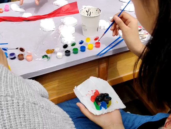 活动开始,志愿者向在场同学们科普了陶瓷的发展史,大大提高了同学们的创作兴趣。在志愿者的指导下,大家纷纷拿起画笔,蘸取颜料,开始在陶瓷杯上挥洒自己的创意与热情。有人选择了清新的花草,有人偏爱唯美的风景,每个人的作品都独具特色,充满了个性与创意