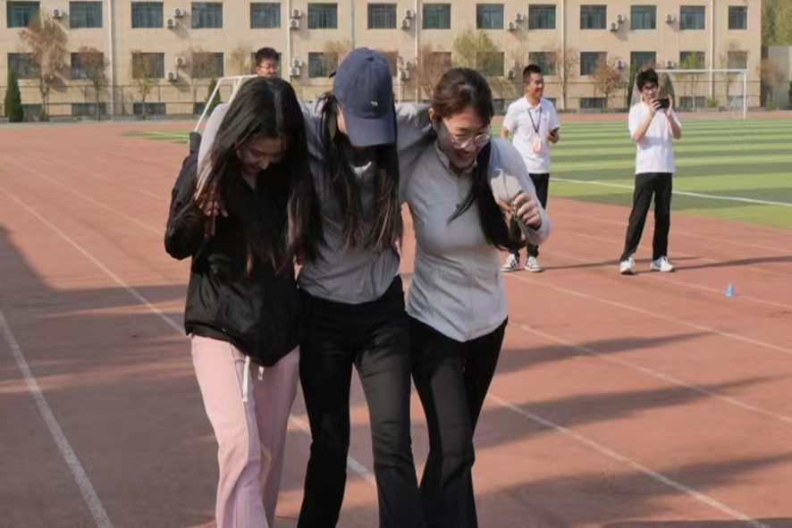 在正式比赛项目进行前,青马学员们绕操场慢跑一圈,预热身体,调整状态。