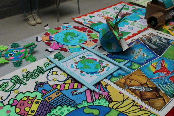 活动中,学生们积极参与,发挥自己的创意和想象力,用画笔和手工材料制作出了一幅幅精美而富有教育意义的艺术作品。这些作品以丰富的色彩、细腻的画风和独特的创意,生动地展现了地球面临的各种环境问题,如气候变化、资源短缺、生物多样性丧失等。表达了同学们对提高环境保护的珍惜和认识。
