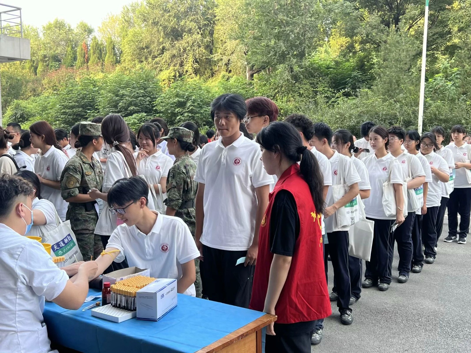 新生们按照预定的时间和地点,分批前往体检中心。在体检过程中,医生们认真细致地为每一位新生进行了全面的身体检查,包括身高、体重、血压、视力、听力等多个项目。