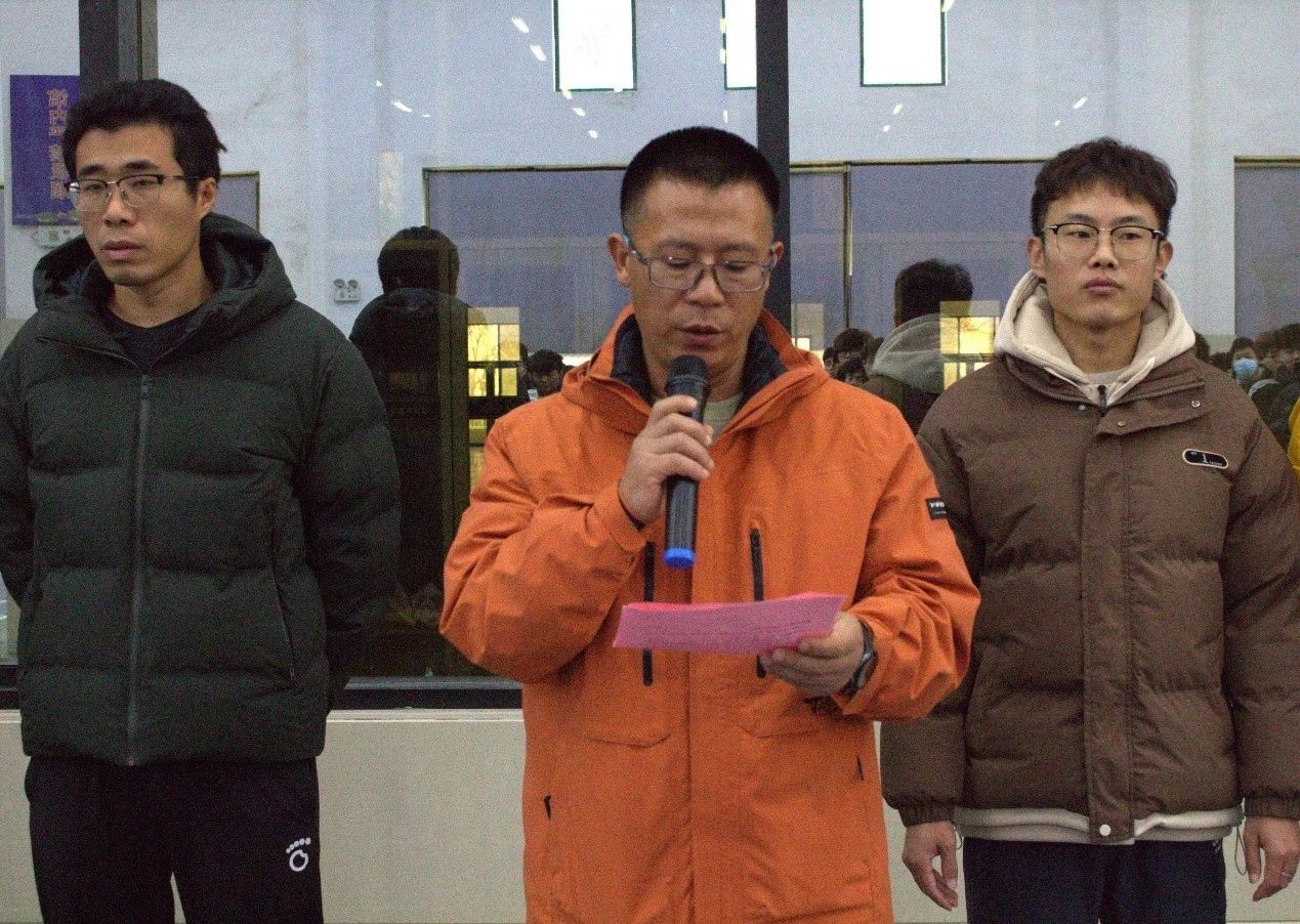 张庆亮老师发表致辞。他表示,一直以来学校十分重视学生的体育教育工作,积极开展了各类体育活动,希望激发学生对体育运动的热爱,引导同学们养成更好的生活习惯。对于此次比赛,他提出了两点期望:一是期望同学们发扬“友谊第一,比赛第二”的精神,尊重对手,赛出风格,赛出水平;二是期望大家发扬顽强拼搏的精神,勇于挑战自我,充分展现现代学子良好的精神风貌。