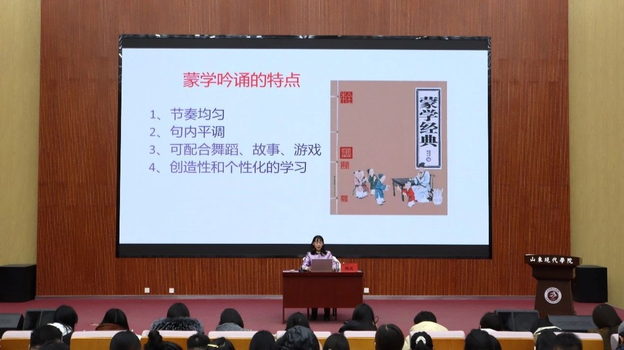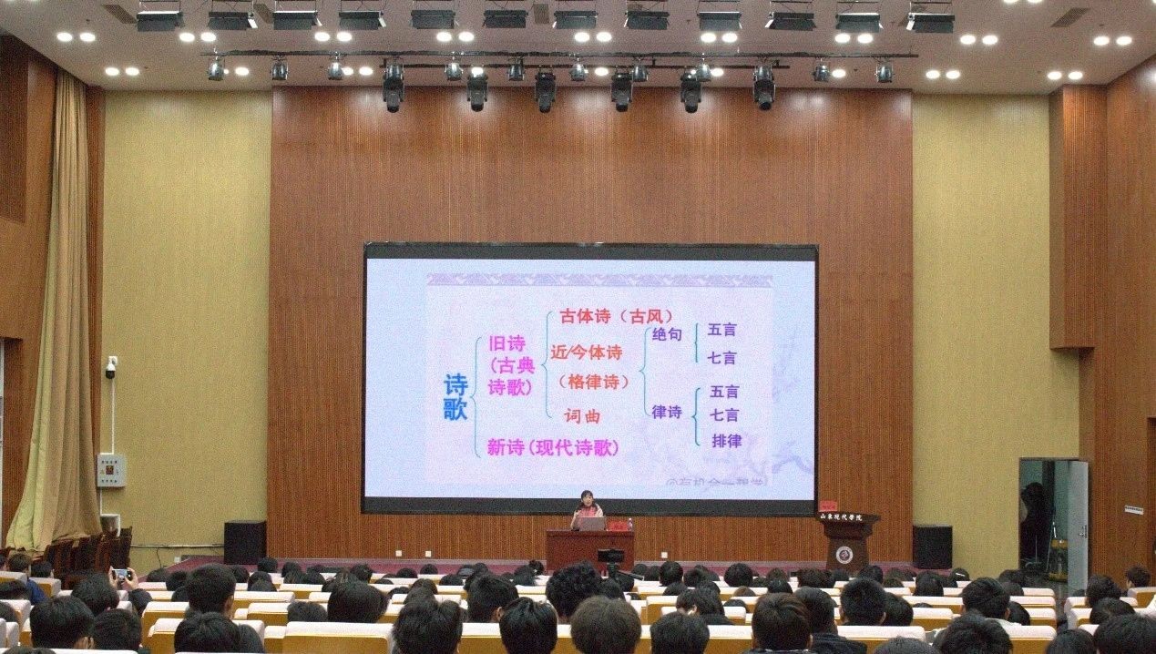 陶波老师以蒙学吟诵为引,围绕其特点向同学们展开讲解,她讲到吟诵的四个特点:“节奏均匀,句内平调,可配合舞蹈、故事、游戏,创造性和个性化的学习”,同时她引用大量经典著作,将其与吟诵结合,并讲解对应的历史背景,带领大家深入学习吟诵之美与《诗经》之妙。