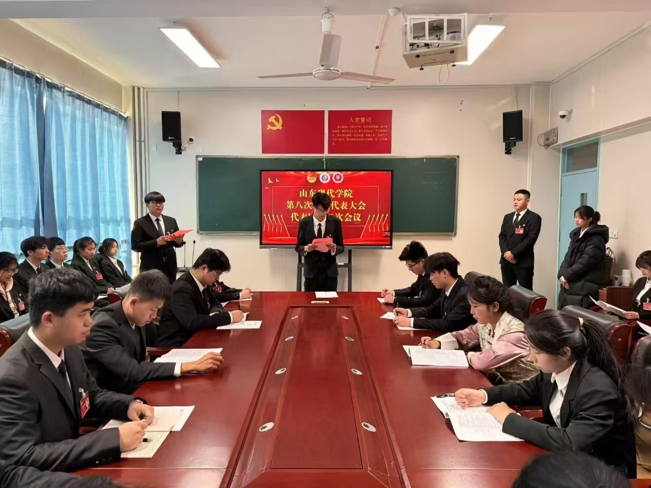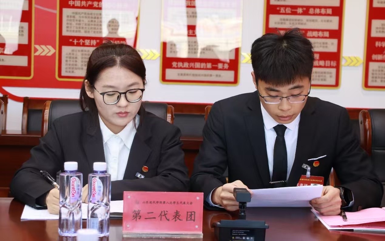 为总结过去一段时间学生会的工作成果,明确未来工作方向,充分发挥学生代表的作用,为学生工作注入新的活力,山东现代学院第八次学生代表大会主席团、代表团根据日程召开会议。