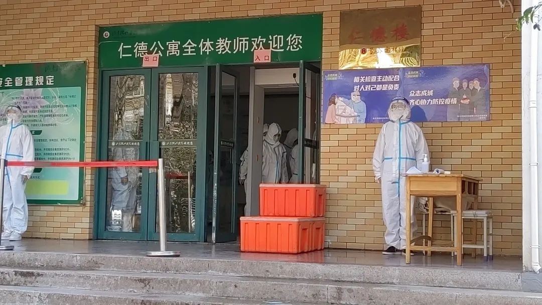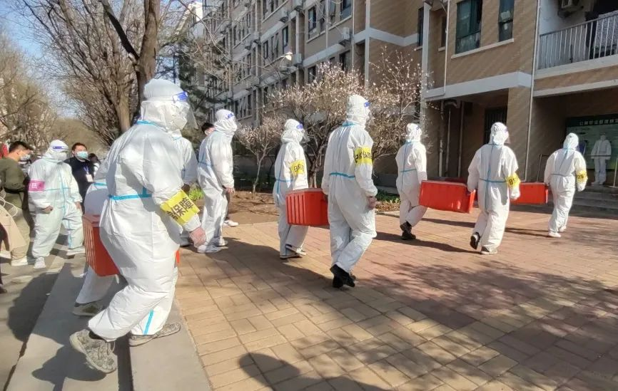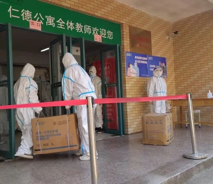 当疫情防控需要,封控区里面任何人都不能进出,此时餐厅保障需要为封控区的人员进行食物补给。由他们为这些同学打好饭并送到此封控区。