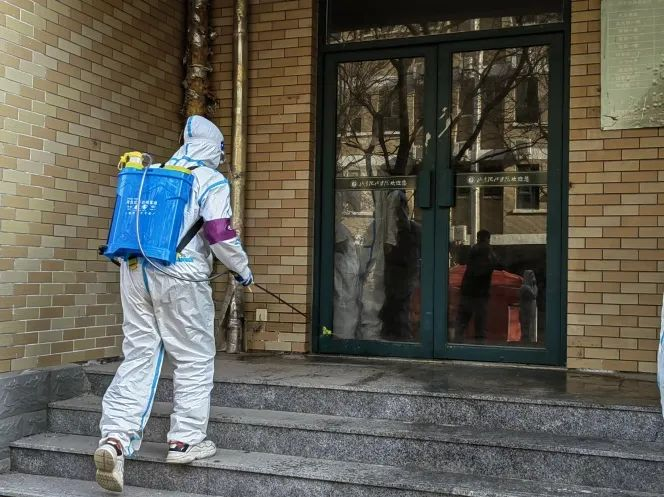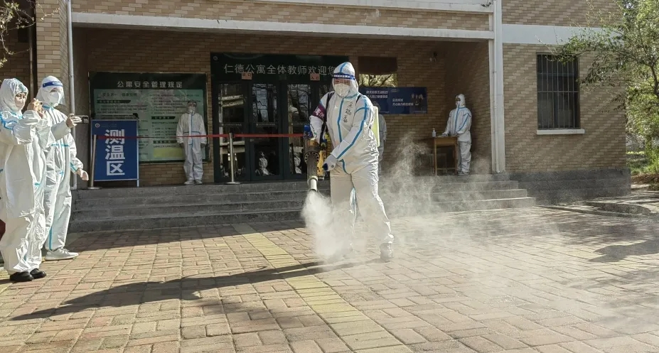 他们的工作是当疫情防控工作需要时必须在听到通知后的第一时间对封控区域进行消毒消杀工作,及时消杀图书馆、教室等人员流动量大的场所;并对配送至封控区的物资及餐篮等进行消毒消杀。