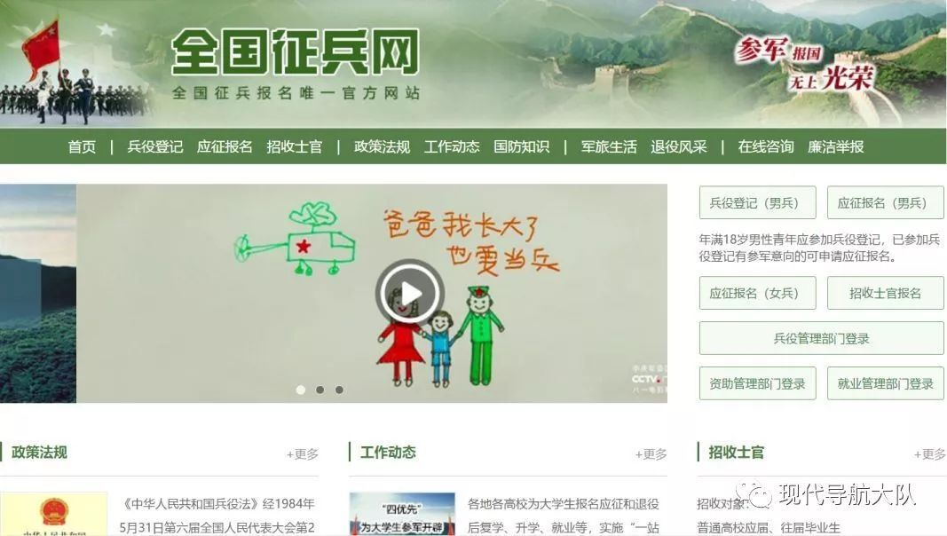 在全国征兵网(https://www.gfbzb.gov.cn/)首页右侧,点击“兵役登记(男兵)”;女生就点下面的“应征报名(女兵)”。