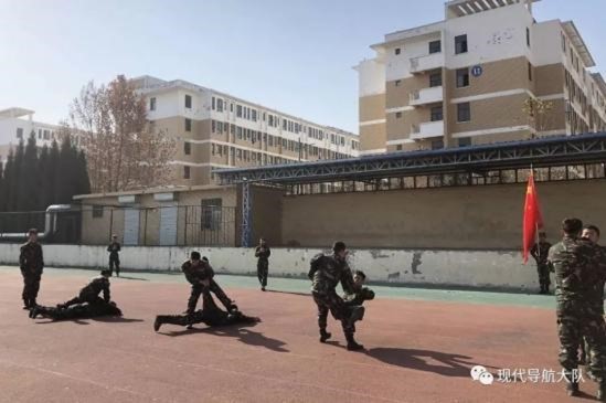 棍术——手握长棍,挺拔如松,一抡一扫中体现着导航员们训练有素的鲜明特征。他们打的铿锵有力,棍棍有声。当他们的棍子一起打在橄榄绿的操场上时,只觉那声音壮气吞牛!