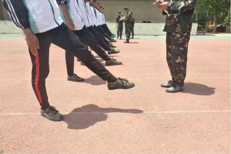 同学们接到考核的消息后,提前到达考核地点进行体能活动操的练习。他们为接下来的考核做好了充分的准备,已蓄势待发。