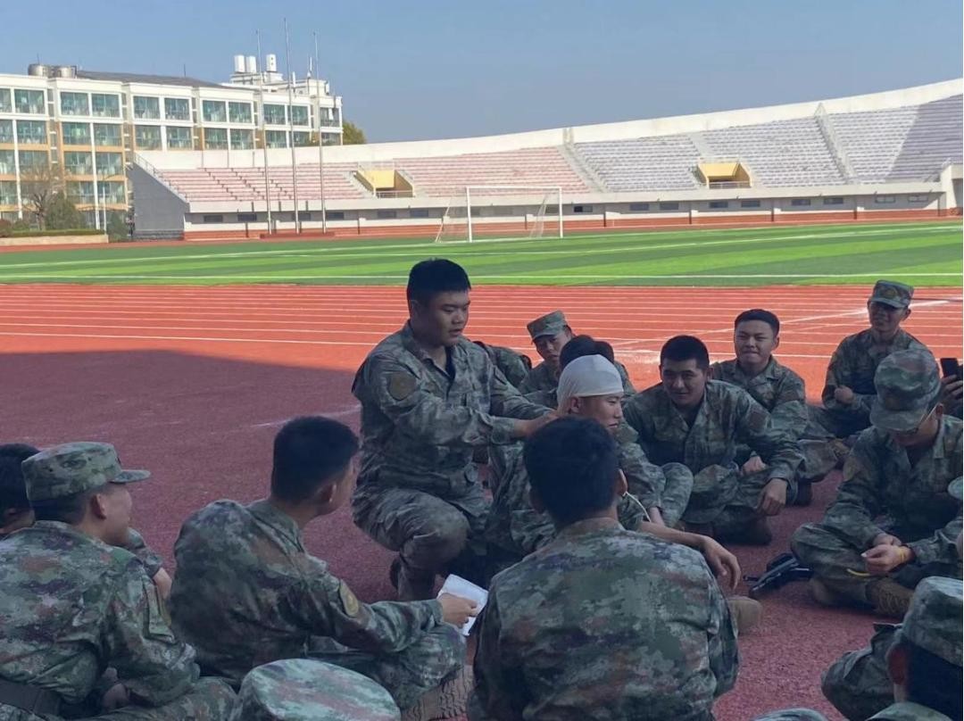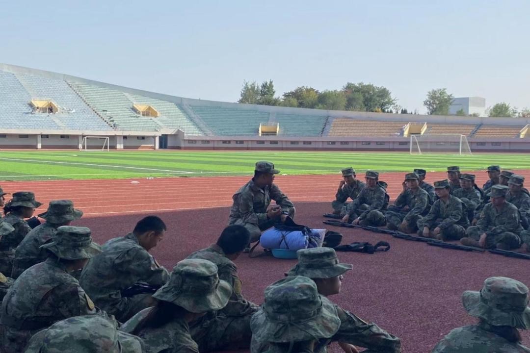 伴着骄阳,导航员训练场地正如火如茶进行着战备规定理论学习和紧急集合的打背包教学。参谋长在场地中央耐心细致讲解打背包“三横两竖”技巧,导航员们围坐一周认真学习。通过基本技能训练,培养队员们快速反应和应急储置能力。