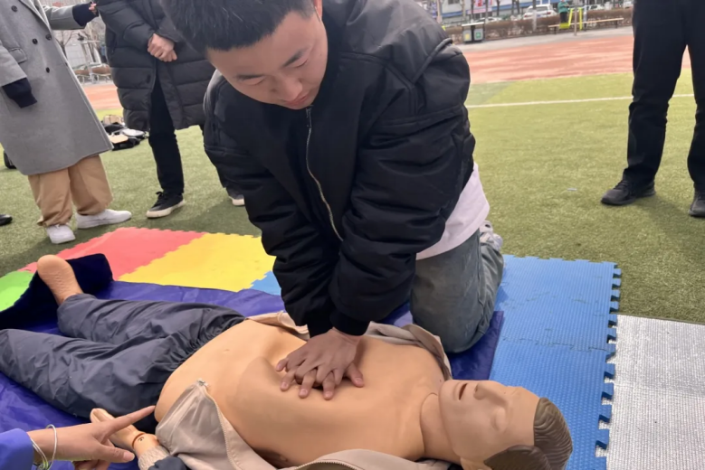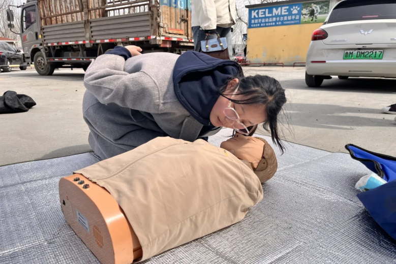 培训在理论讲授的基础上通过现场演示、实践操作等方式,结合人体模型、急救用具以分组指导的形式进行授课,逐一讲解了胸外按压、人工呼吸、包扎、骨折固定等施救技巧,重点强调了心肺复苏。