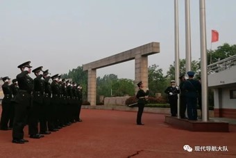 国旗护卫队身着整齐军装,迈着英武步伐,护卫着国旗走向升旗台。伴随着雄壮的国歌声,鲜艳的五星红旗冉冉升起,在场的全体师生齐唱国歌,立正向国旗行注目礼。
