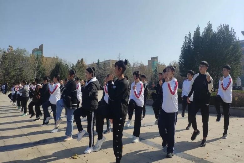 身体协调操第一节伸展运动,第八届导航员们在英姿飒爽的教官的带领下认真学习领会,丝毫没有半点松懈,尽管动作生疏,但他们精神充沛,仔细体会,反复训练。
