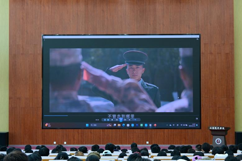 同学们共同观看了征兵宣传视频,视频中激昂的音乐和热血的画面展现了军旅生涯的豪迈及军人保家卫国的刚毅,点燃了在场同学们心中的激情。