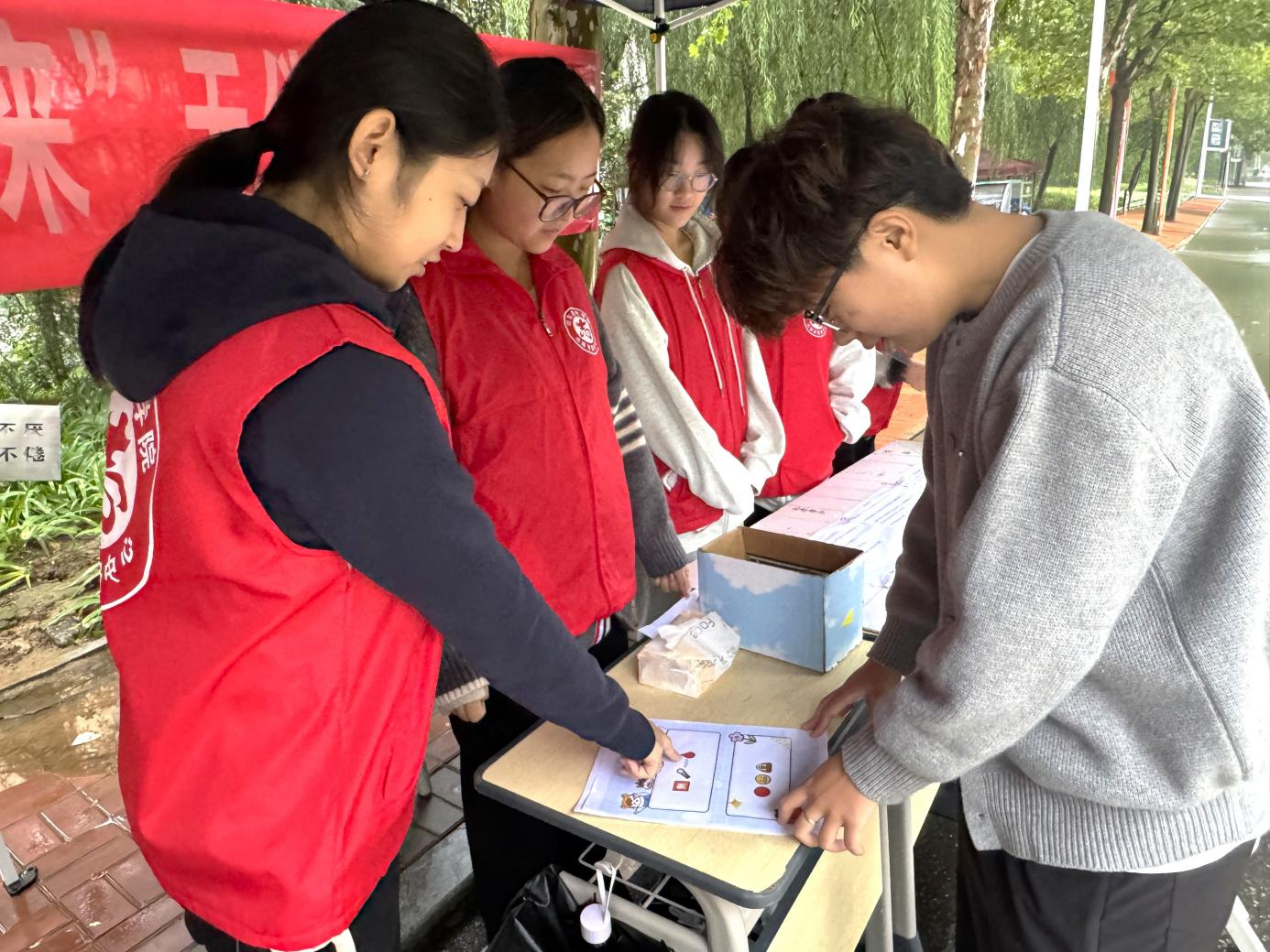 “献血版你画我猜”环节中,同学们两人一组,一人根据献血词汇作画,另一人猜词,创意画作引发阵阵欢笑;Emoji猜成语摊位前,彩色表情卡片吸引同学们驻足思考。四个游戏环环相扣,寓教于乐,让大家在轻松氛围中了解献血知识,传递爱心温暖。