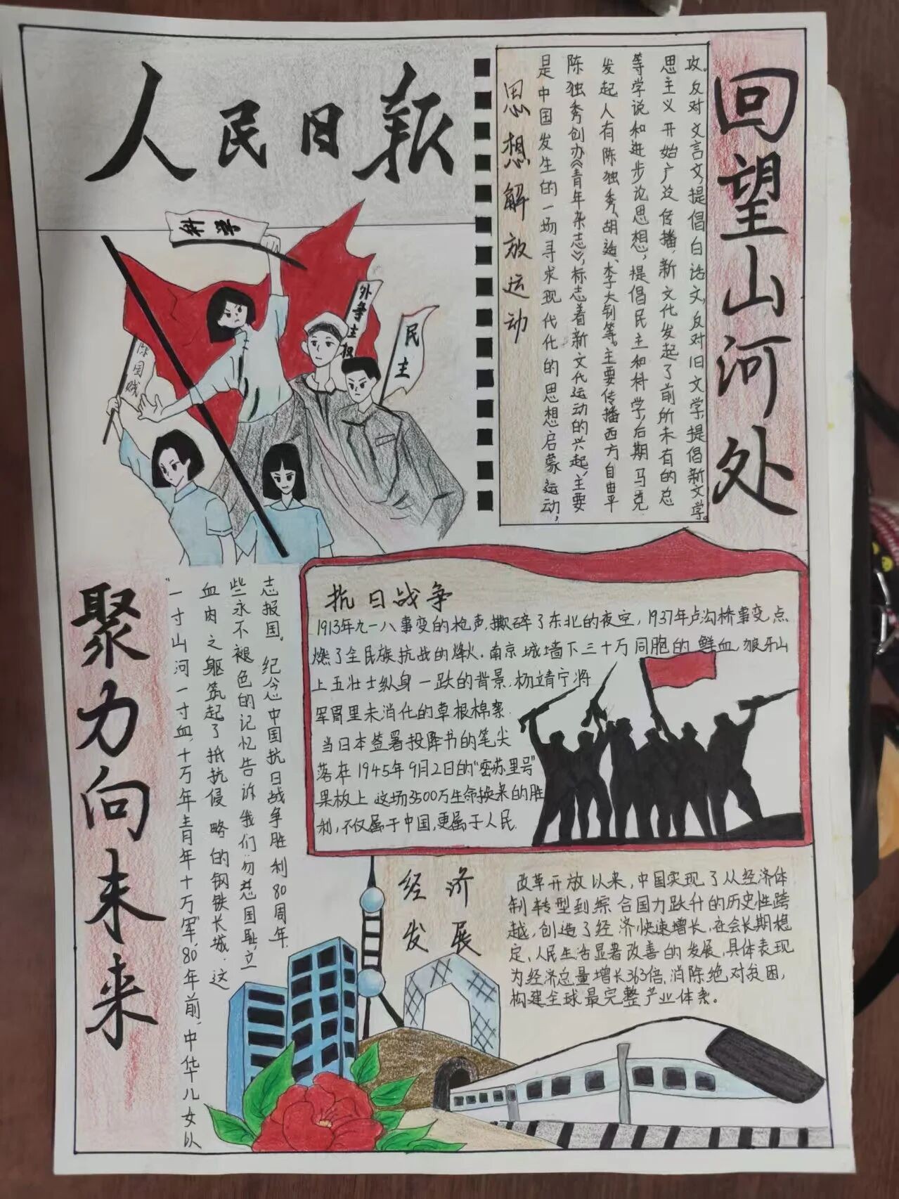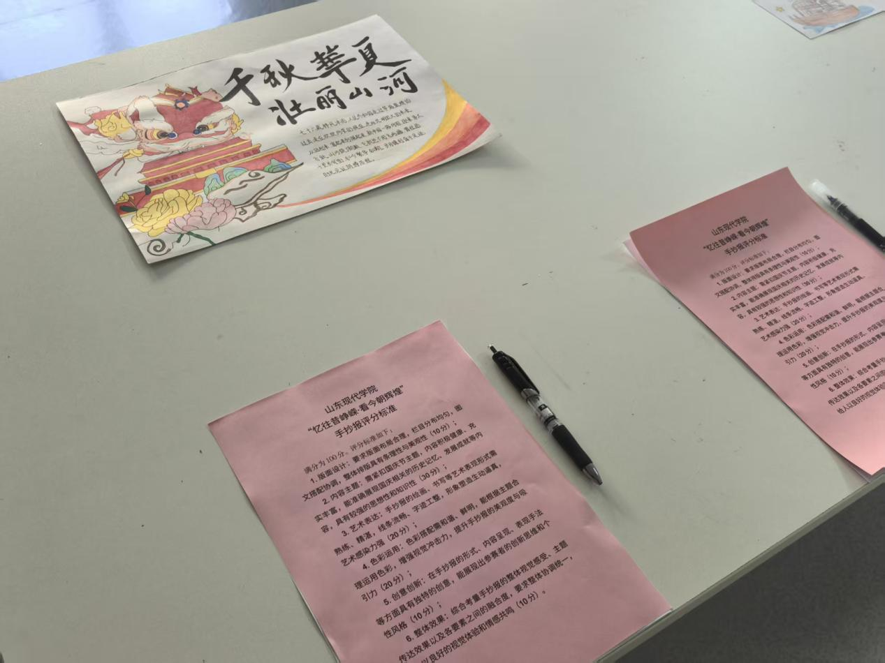 金风送喜,举国同欢。为传承红色基因,凝聚奋进力量,增强学生的爱国情怀与民族认同感,9月26日,由共青团山东现代学院委员会主办,学生联合会学习部承办的“忆往昔峥嵘·看今朝辉煌”主题手抄报比赛在文化展览室举办。