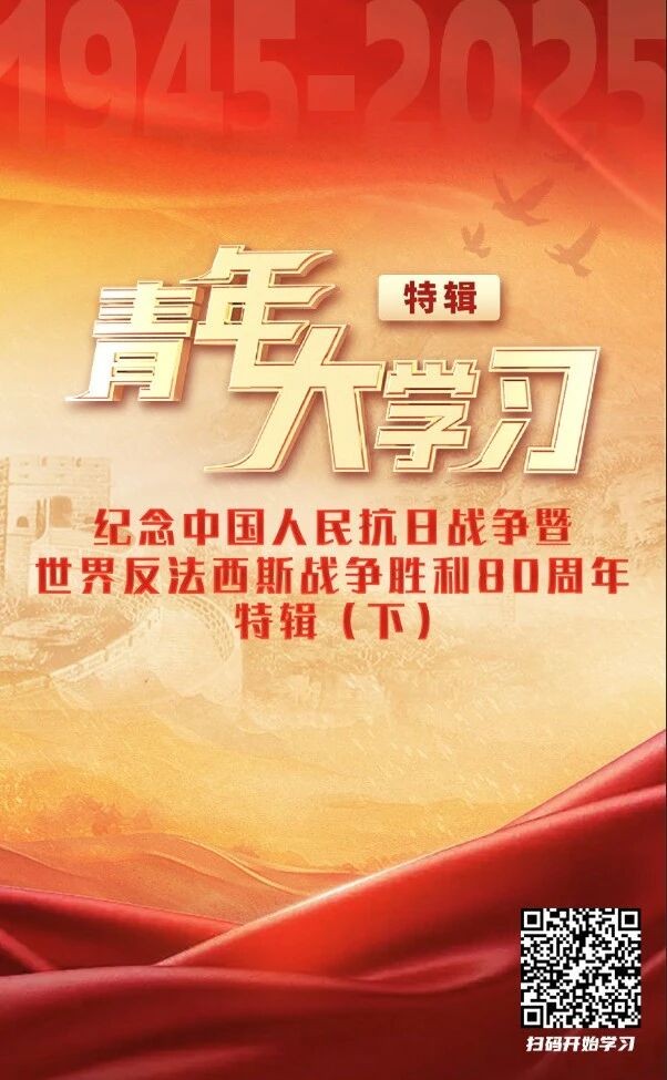 本期青年大学习,让我们一起学习习近平总书记的重要讲话,深刻感悟伟大抗战精神中天下兴亡、匹夫有责的爱国情怀,视死如归、宁死不屈的民族气节,不畏强暴、血战到底的英雄气概,百折不挠、坚忍不拔的必胜信念。新时代新征程,我们要团结奋斗、锐意进取,向着中华民族伟大复兴的光辉目标奋勇前进。