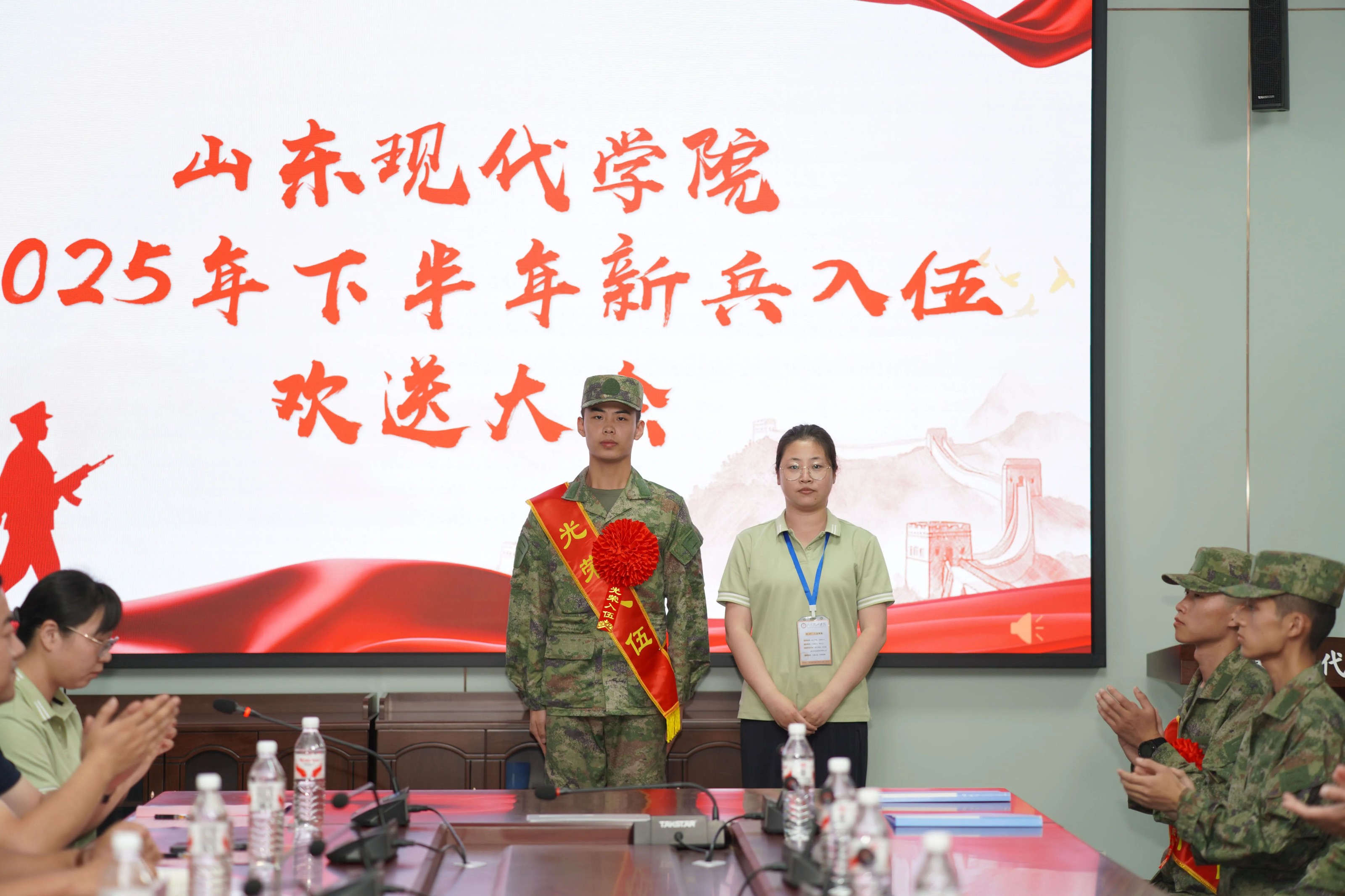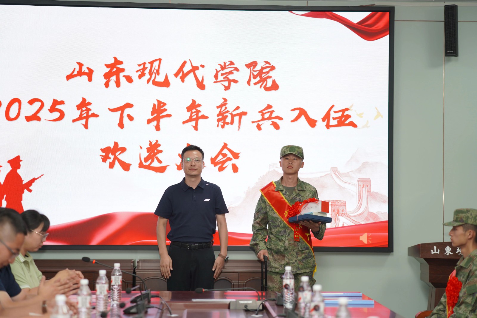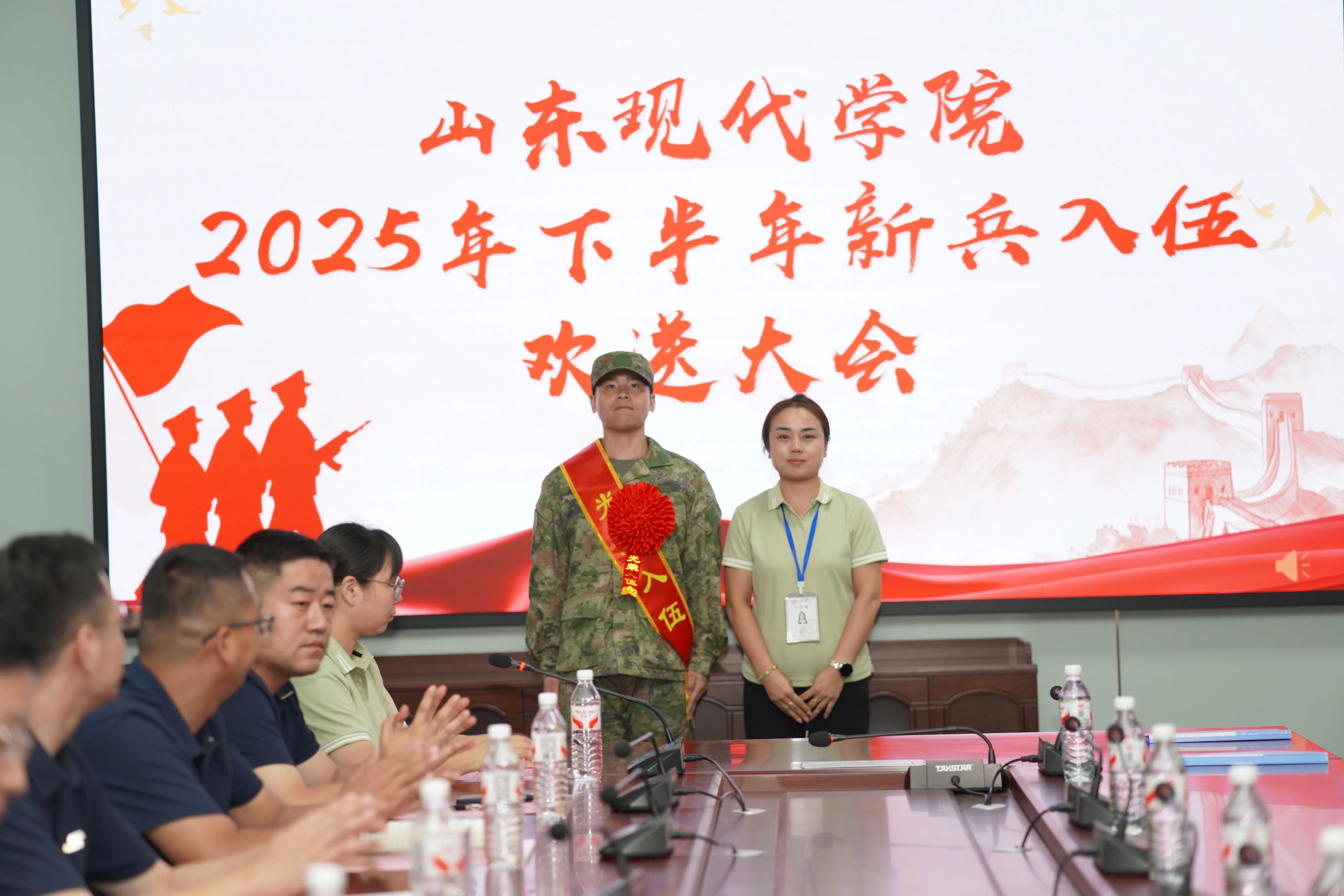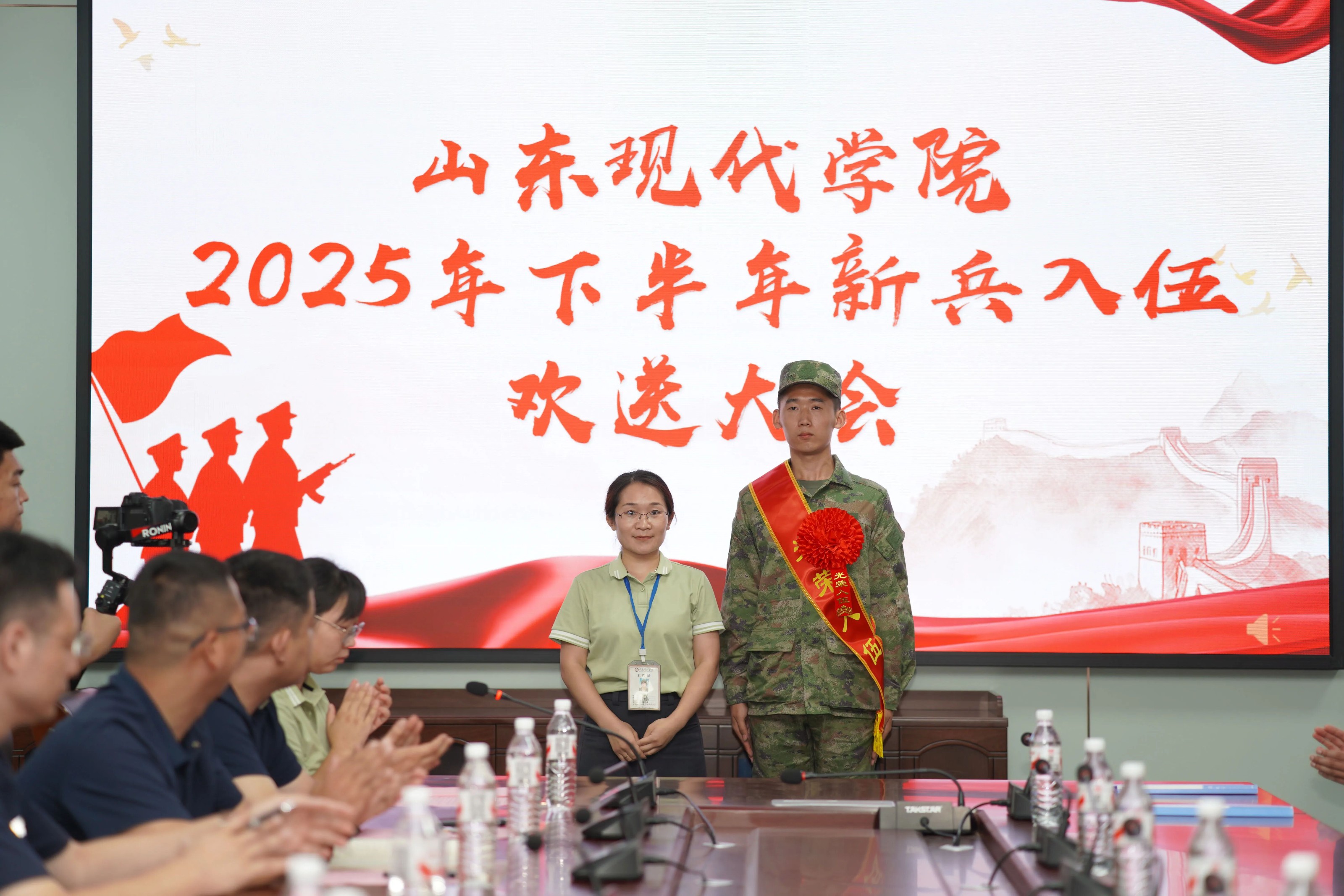 近日,学校举办2025年下半年新兵入伍欢送会,为即将身披戎装、奔赴军营的现代学子们送行。常务副校长姜同松、学生处征兵工作站成员、各二级学院主要负责人、应征学生的辅导员及家长代表齐聚现场,共同见证这批青年学子从 校园走向军营、肩负起保家卫国使命的光荣时刻。