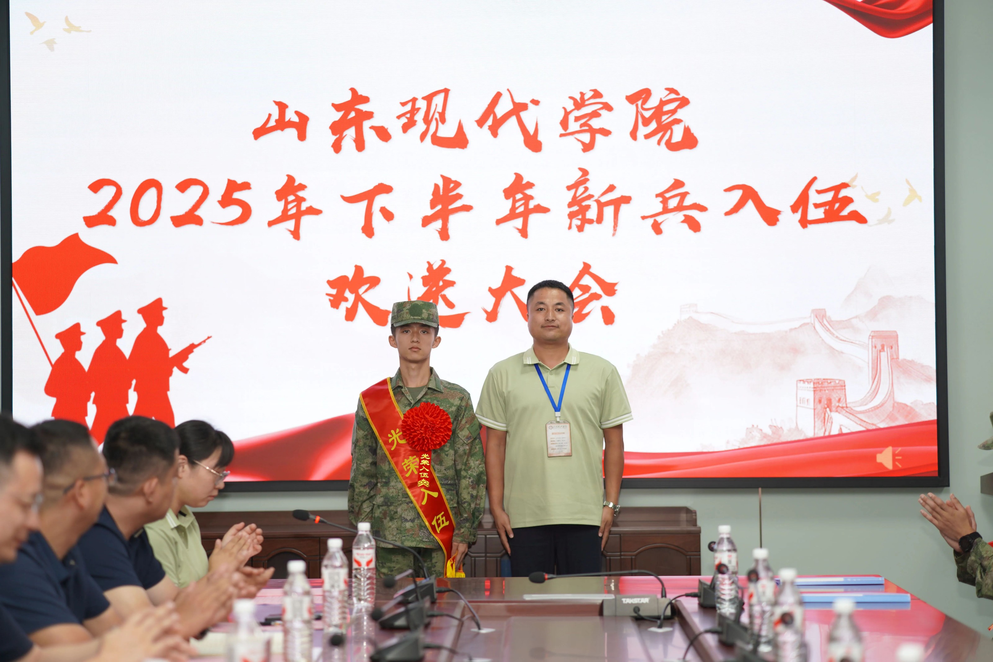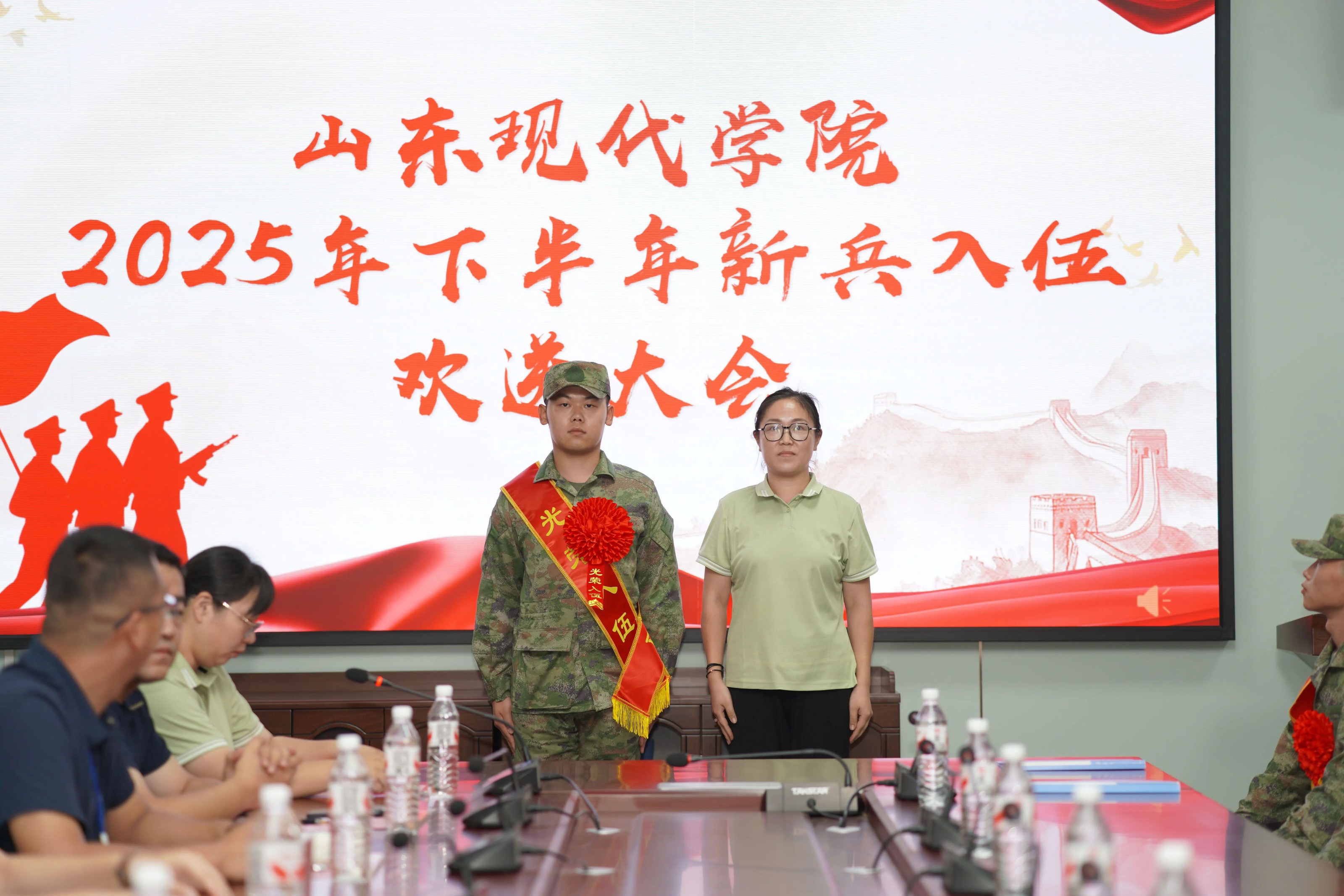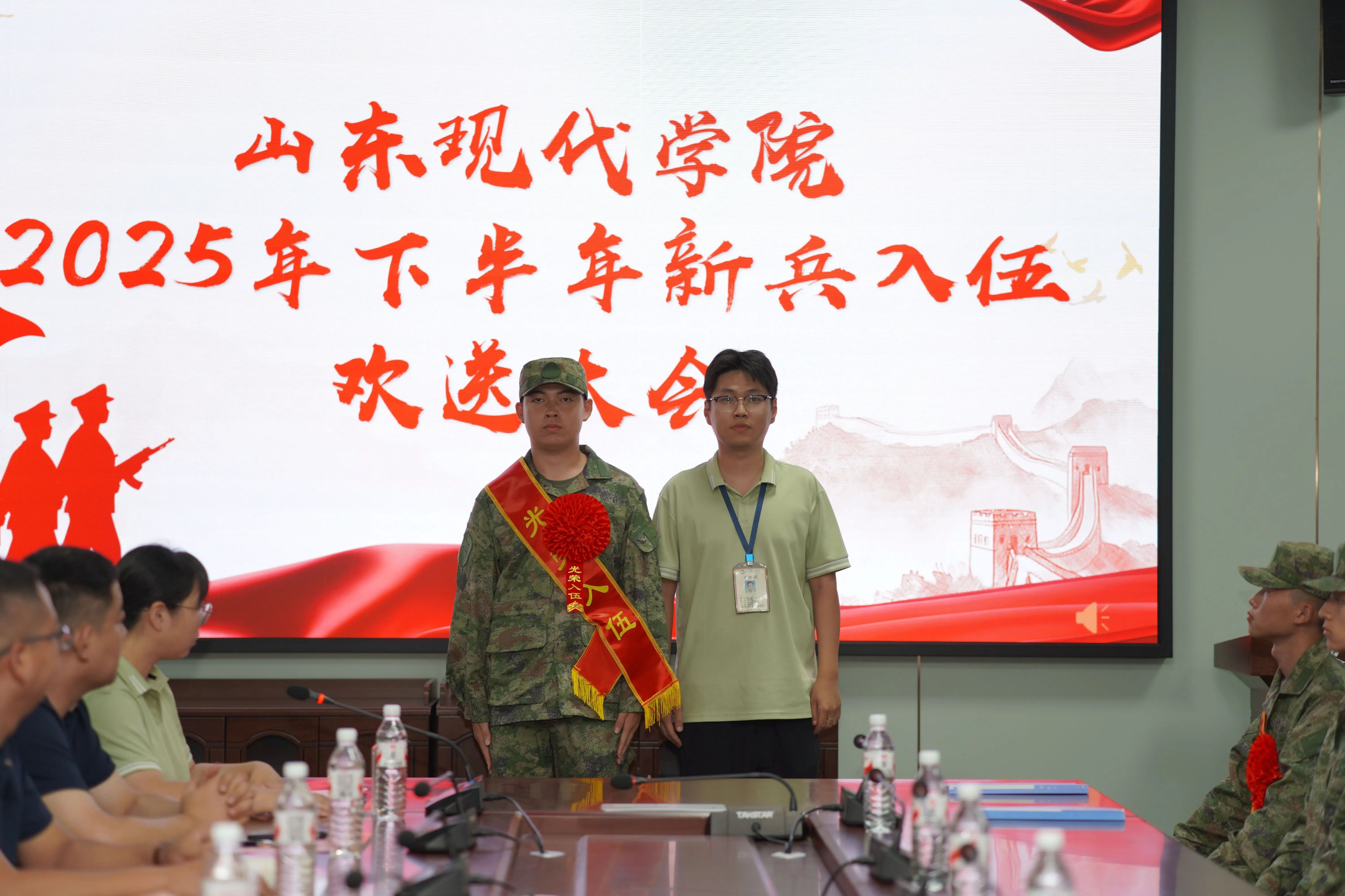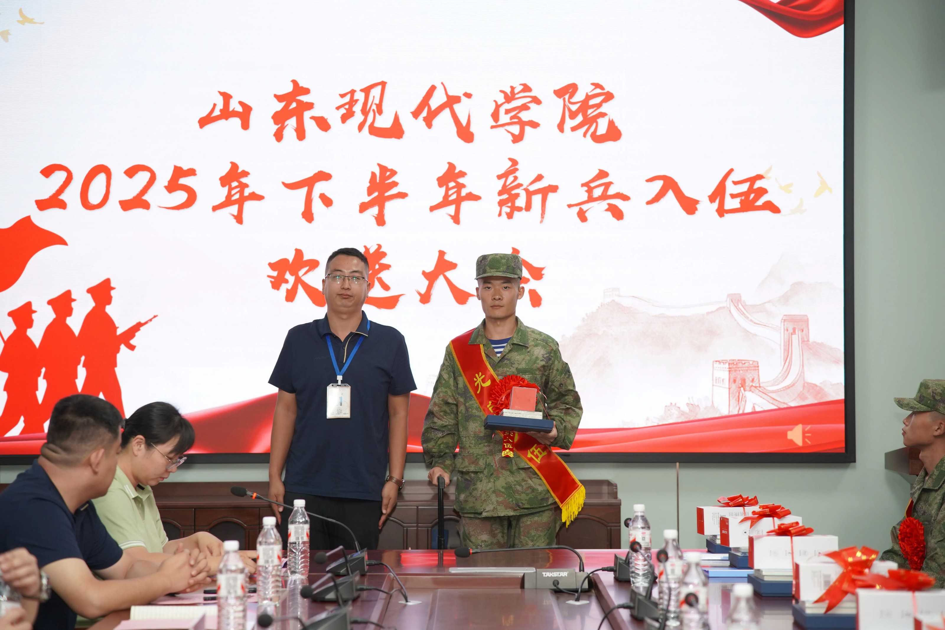 近日,学校举办2025年下半年新兵入伍欢送会,为即将身披戎装、奔赴军营的现代学子们送行。常务副校长姜同松、学生处征兵工作站成员、各二级学院主要负责人、应征学生的辅导员及家长代表齐聚现场,共同见证这批青年学子从 校园走向军营、肩负起保家卫国使命的光荣时刻。