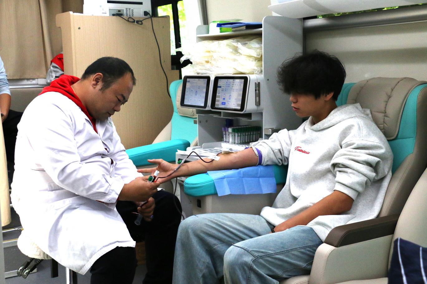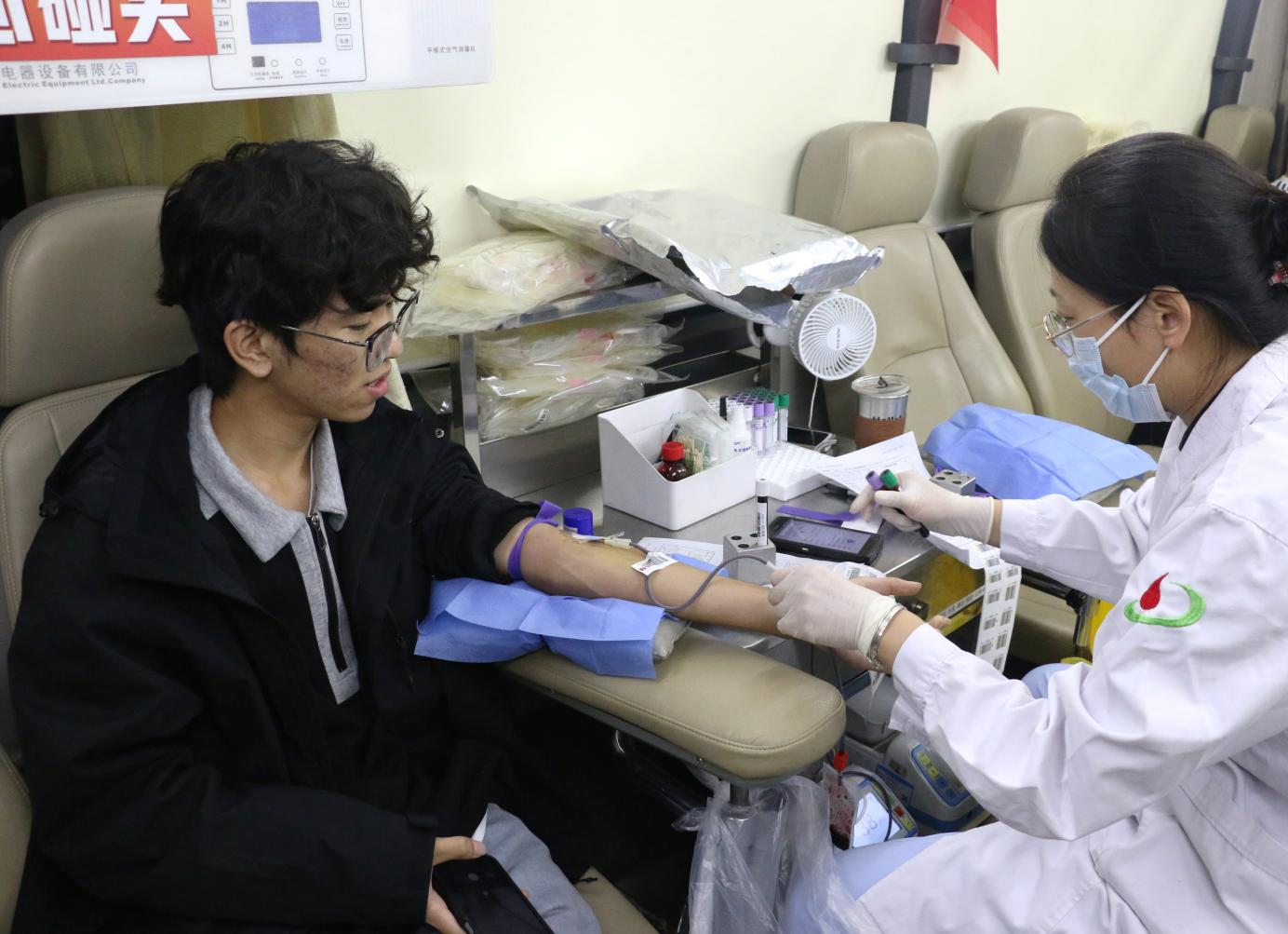 在志愿者的引导下,同学们依次完成登记、初筛与血型检测等流程。 医护人员全程坚守,耐心讲解注意事项,如"献血前保持饮食清淡""采血后正确按压针眼"等,为献血者营造了安全、安心的爱心传递环境。