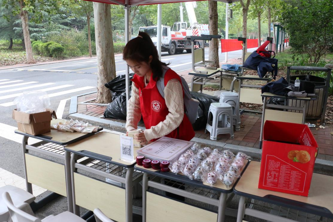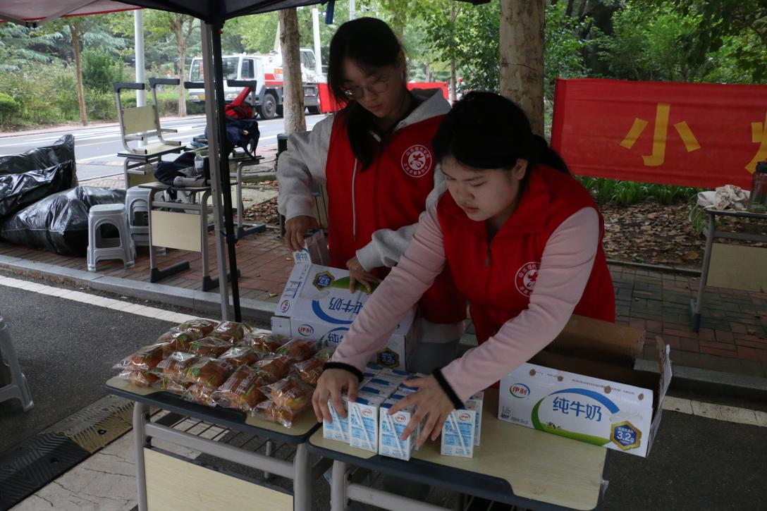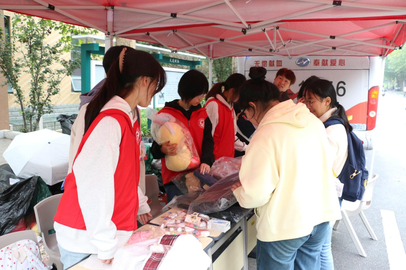 每完成一次采血,志愿者便及时引导献血者至休息区, 为其递上牛奶、面包等补给品,并赠送定制徽章、玩偶、书包等纪念礼物。这些印有'青春热血·为爱前行'字样的专属礼品,既是对爱心奉献的肯定,也为这段温暖时光留下了珍贵纪念。