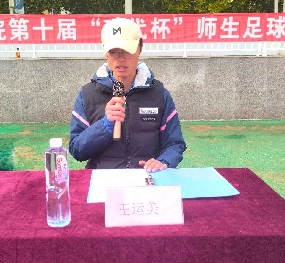 为积极响应体育强国战略,提升学生身体素质,展现新时代大学生的蓬勃朝气与运动热情,10月20日,由共青团山东现代学院委员会主办,学生社团管理部校足球队承办的“绿茵激情·联赛争锋”第十届现代杯师生足球联赛在天行健体育场正式拉开帷幕。本次联赛由校队教练李秀彬担任裁判长。
