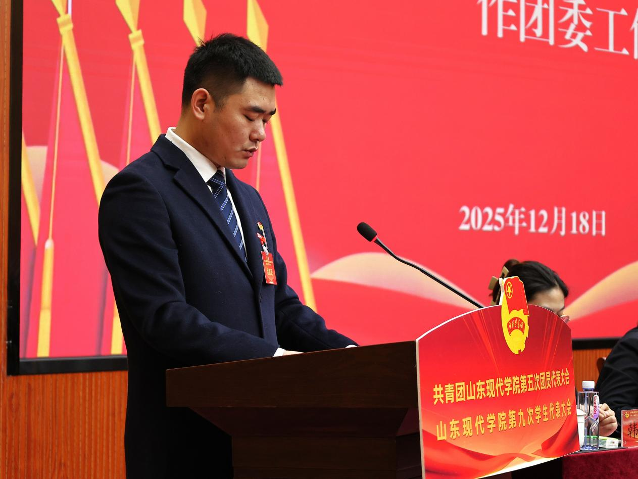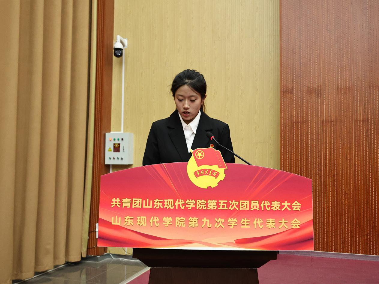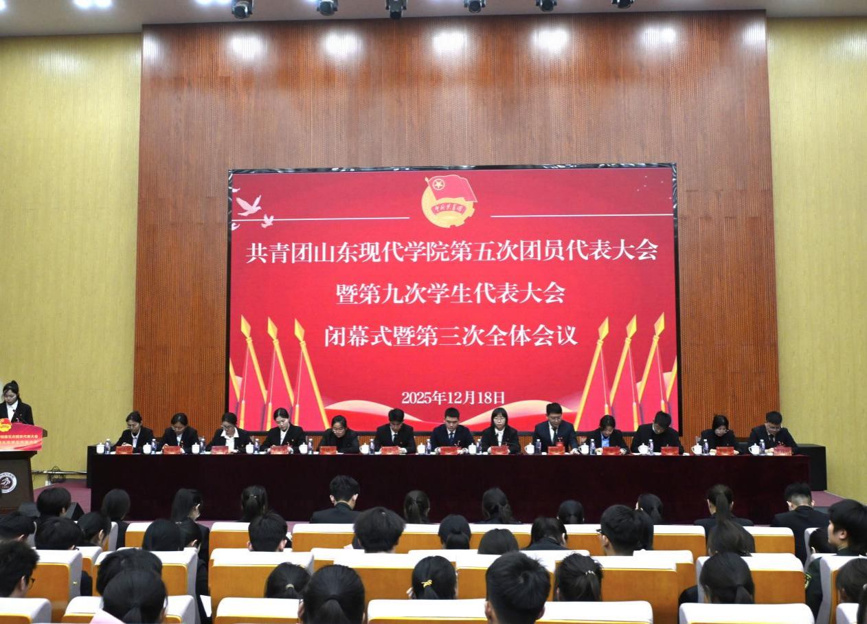 12月18日,共青团山东现代学院第五次团员代表大会暨第九次学生代表大会闭幕式在图书馆报告厅举行。