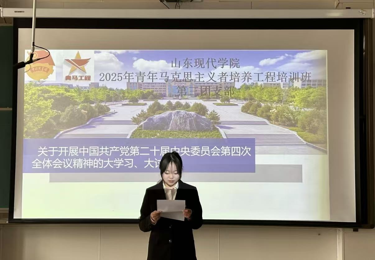 百年征程风华正茂,薪火相传砥砺前行。为深入学习贯彻习近平总书记关于青年工作的重要思想,3月11日,我校2025年青年马克思主义者培养工程培训班各团支部组织学习中国共产党第二十届中央委员会第四次全体会议精神。
